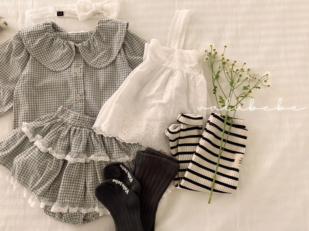 Anne Shirley02|(3m-22m) 1色格紋綁帶荷葉包屁衣