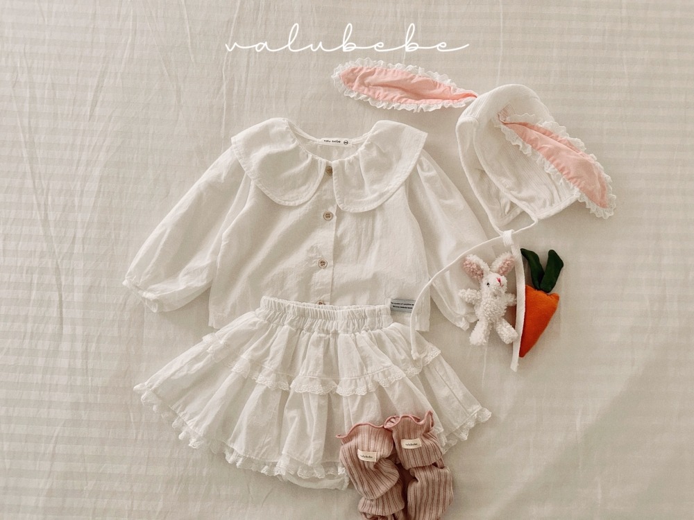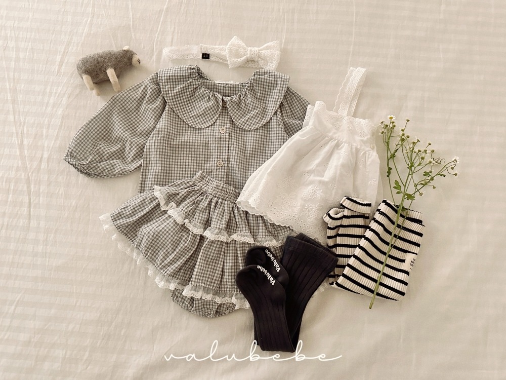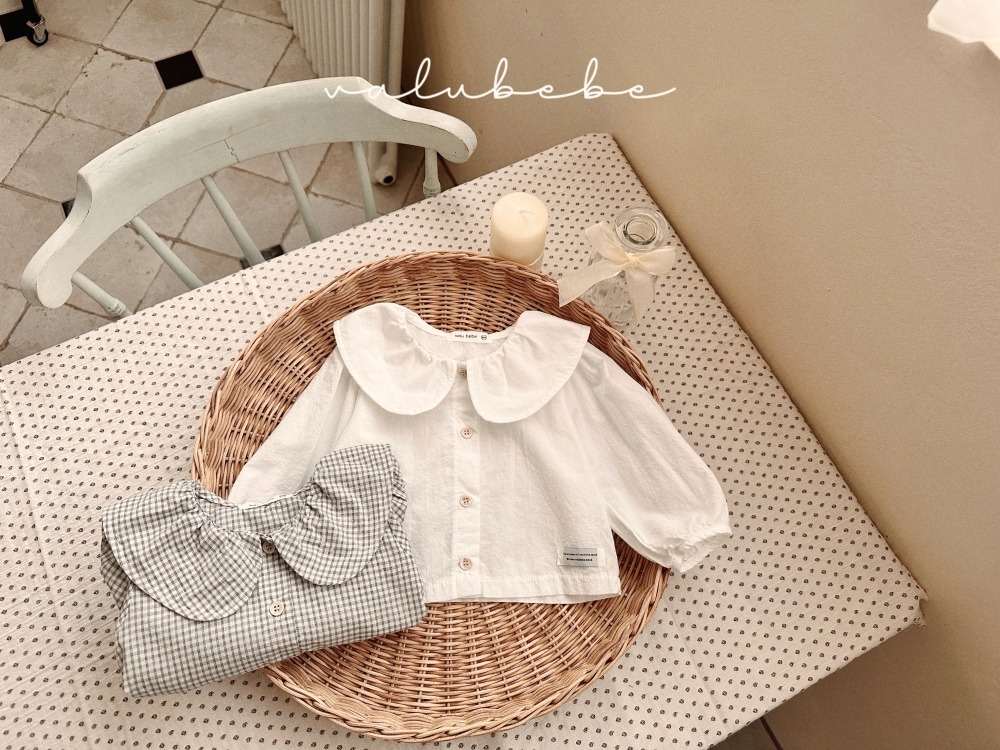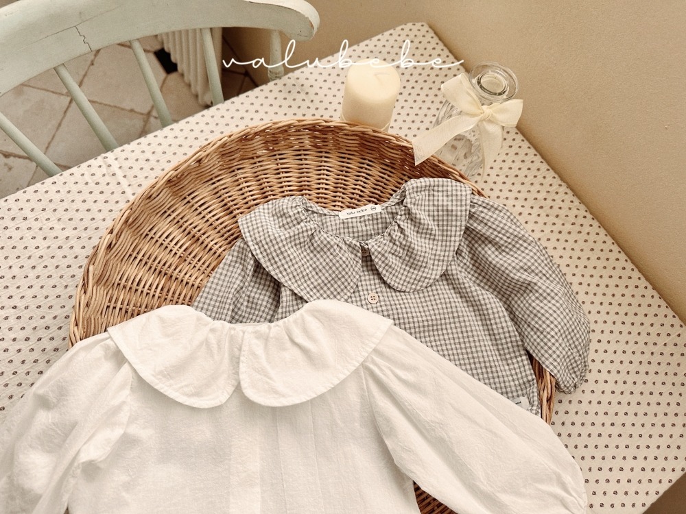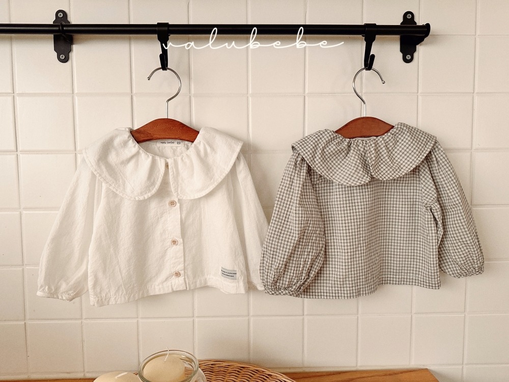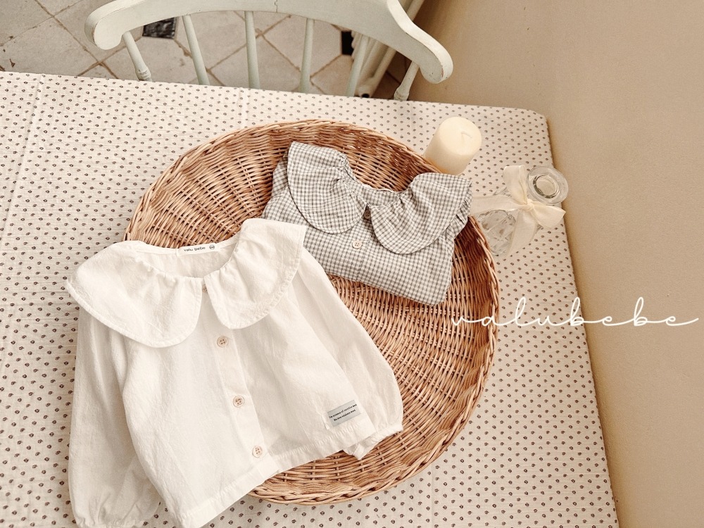 Valubebe71|(65-90) 荷葉花領細條紋襯衫