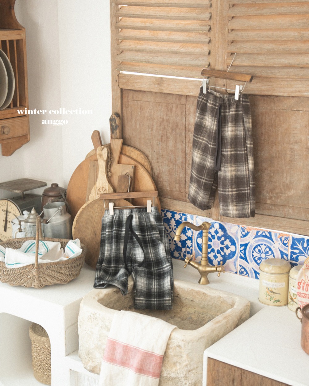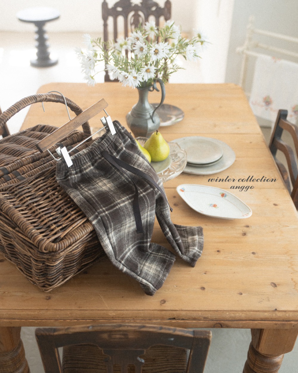 anggo04|(75cm-120cm) 冬季格紋抽繩長褲
