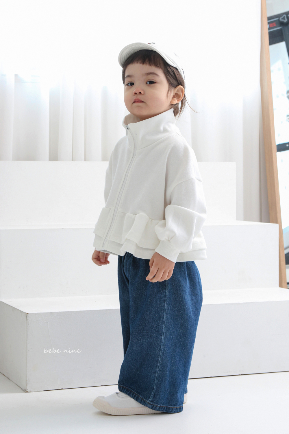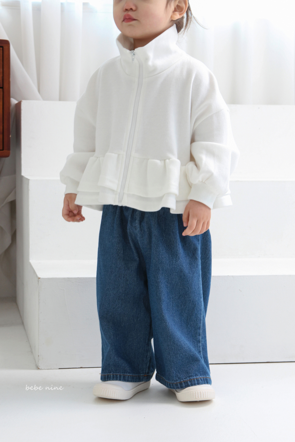 bebe nine30 (65-115) 3色立領蛋糕裙襬拉鍊外套