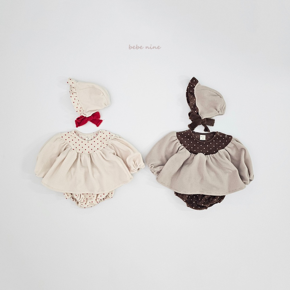 bebe nine05 (65cm-75cm) 2色波點撞色套裝含帽子
