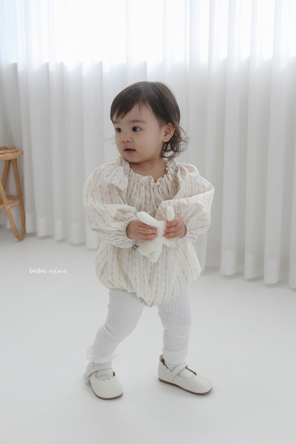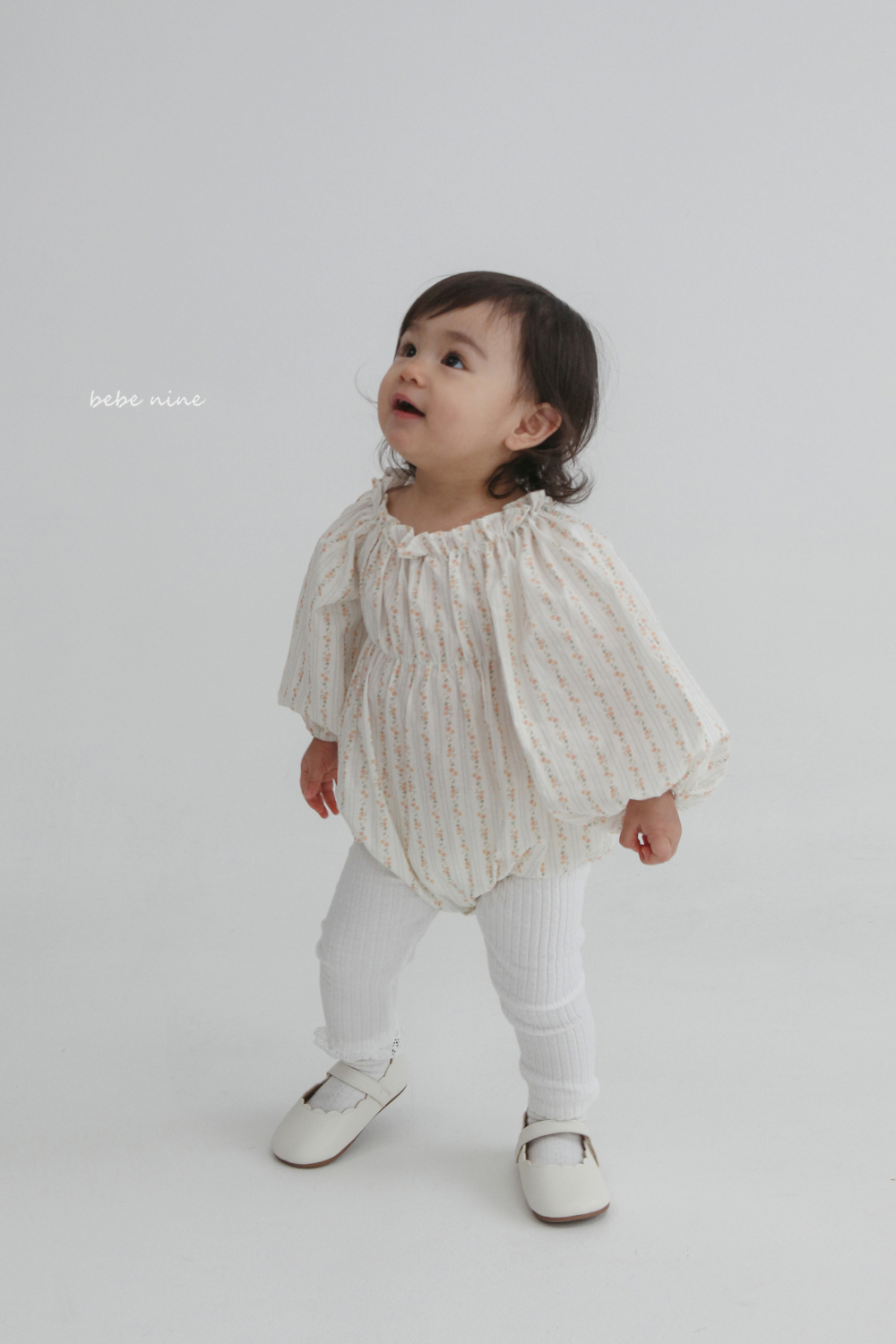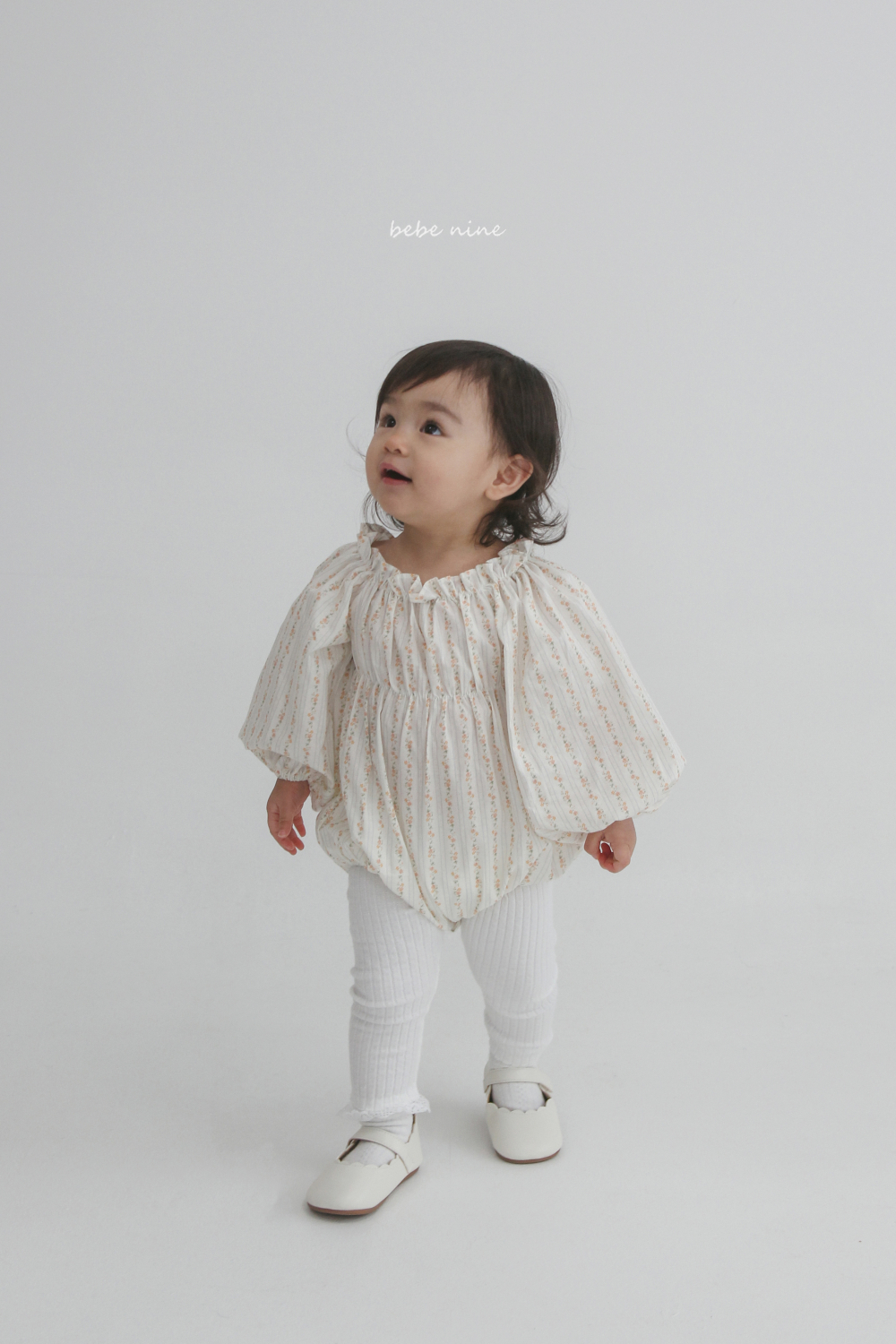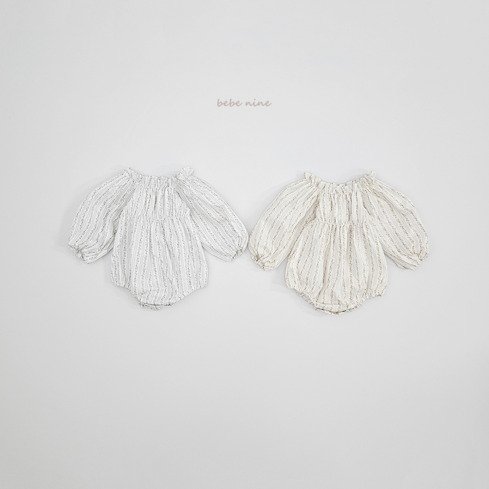 bebe nine06 (65-90) 2色荷葉立領碎花包屁衣