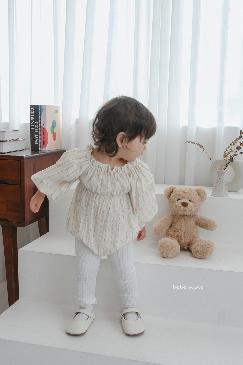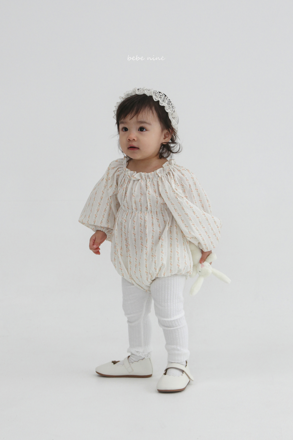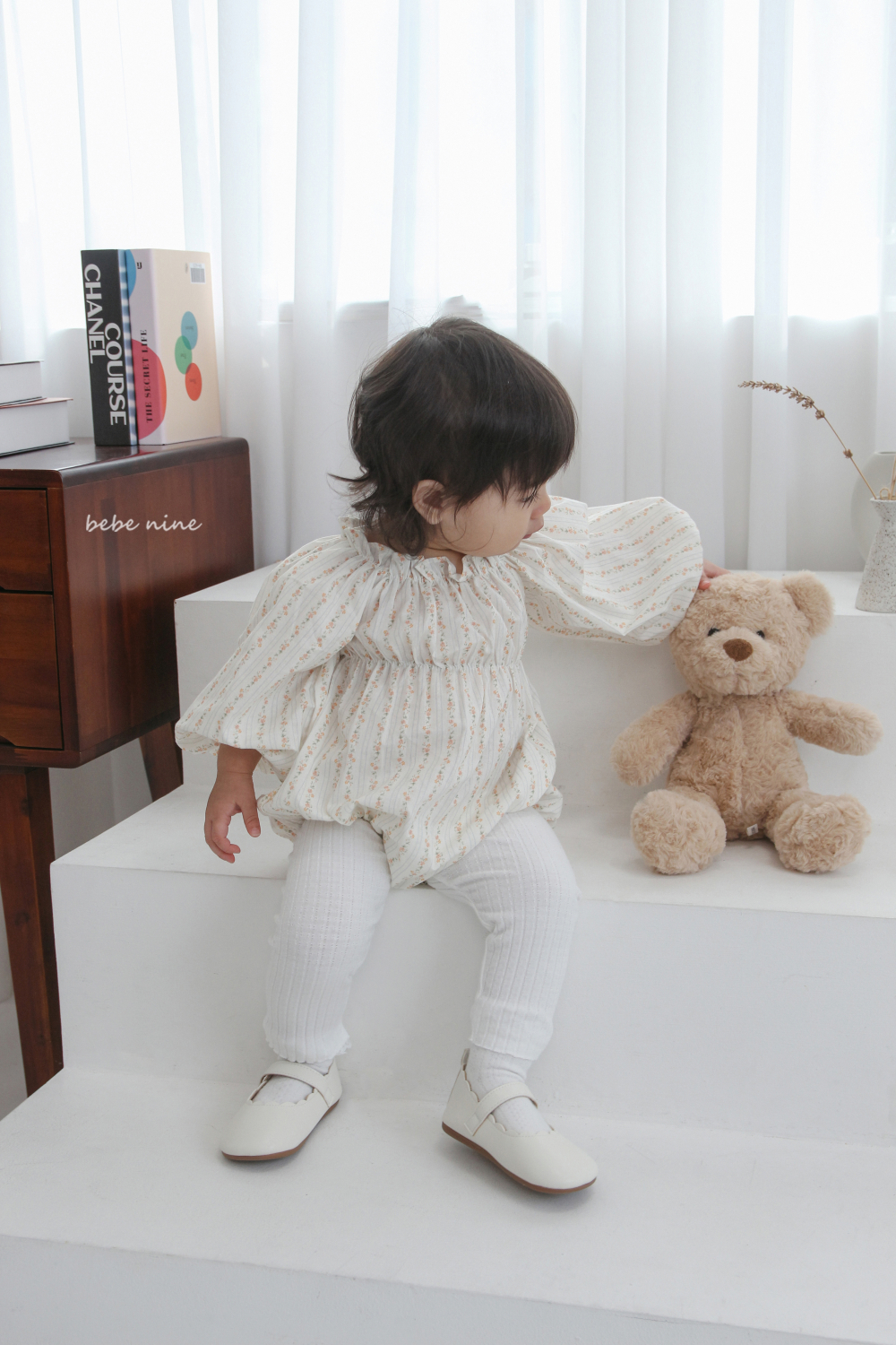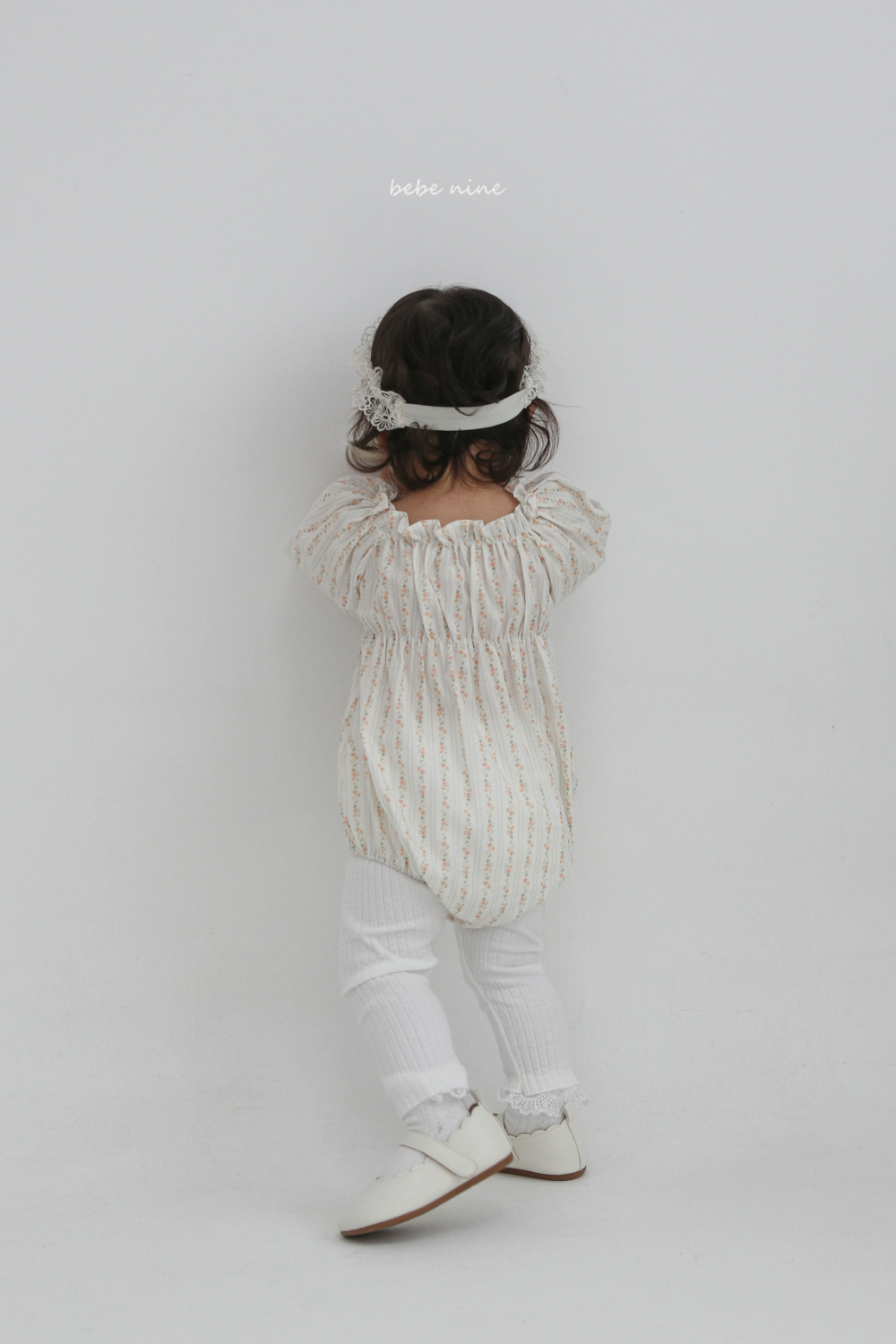 bebe nine06 (65-90) 2色荷葉立領碎花包屁衣