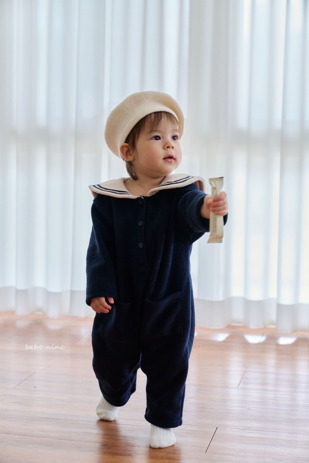 bebe nine13 (55cm-75cm) 2色水手領連身衣