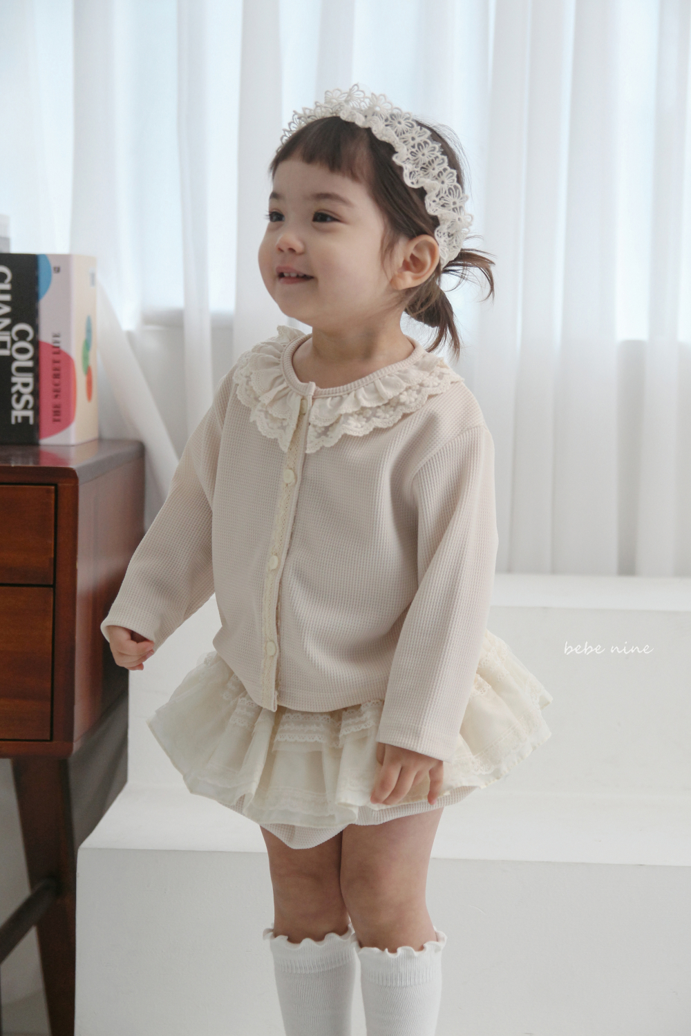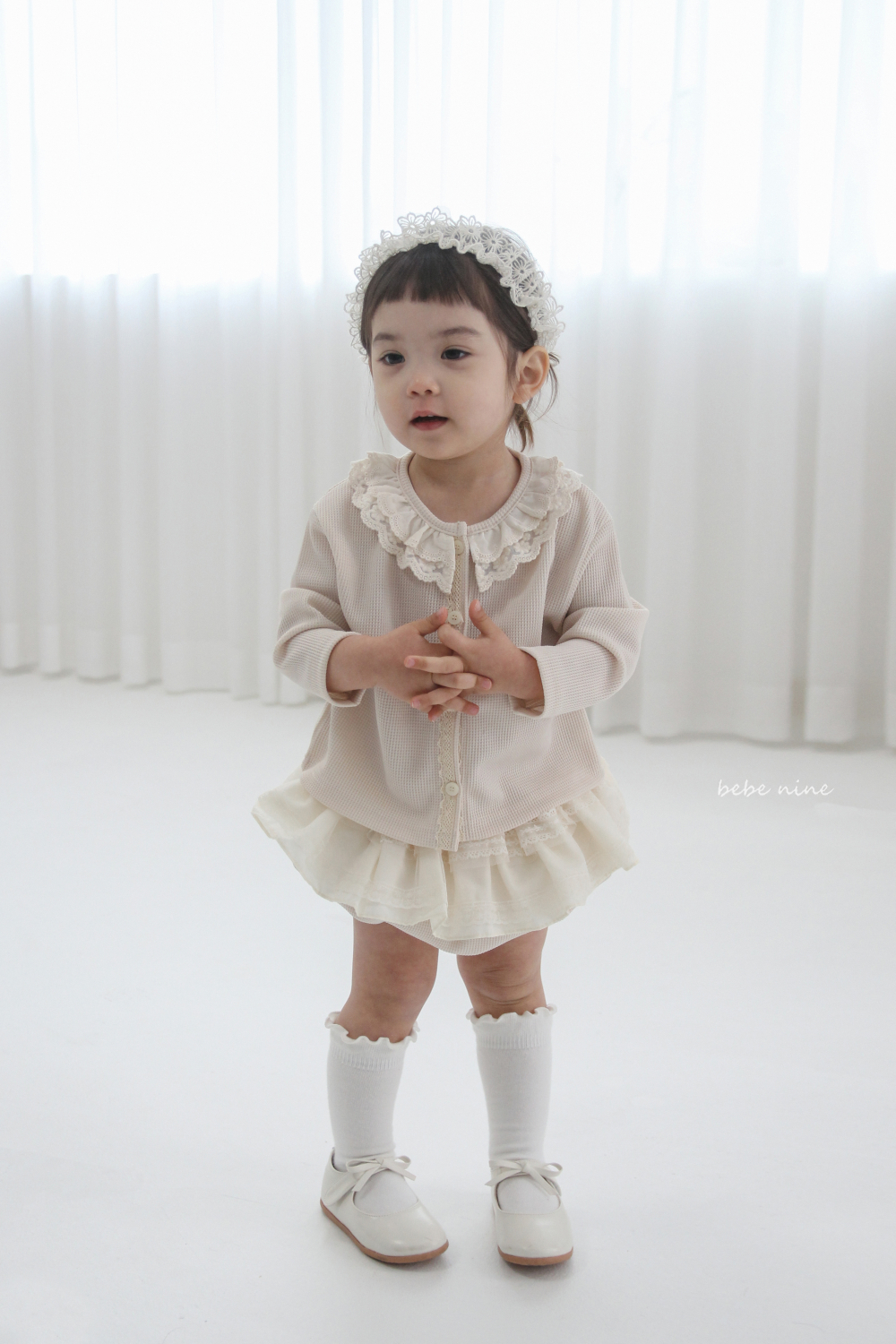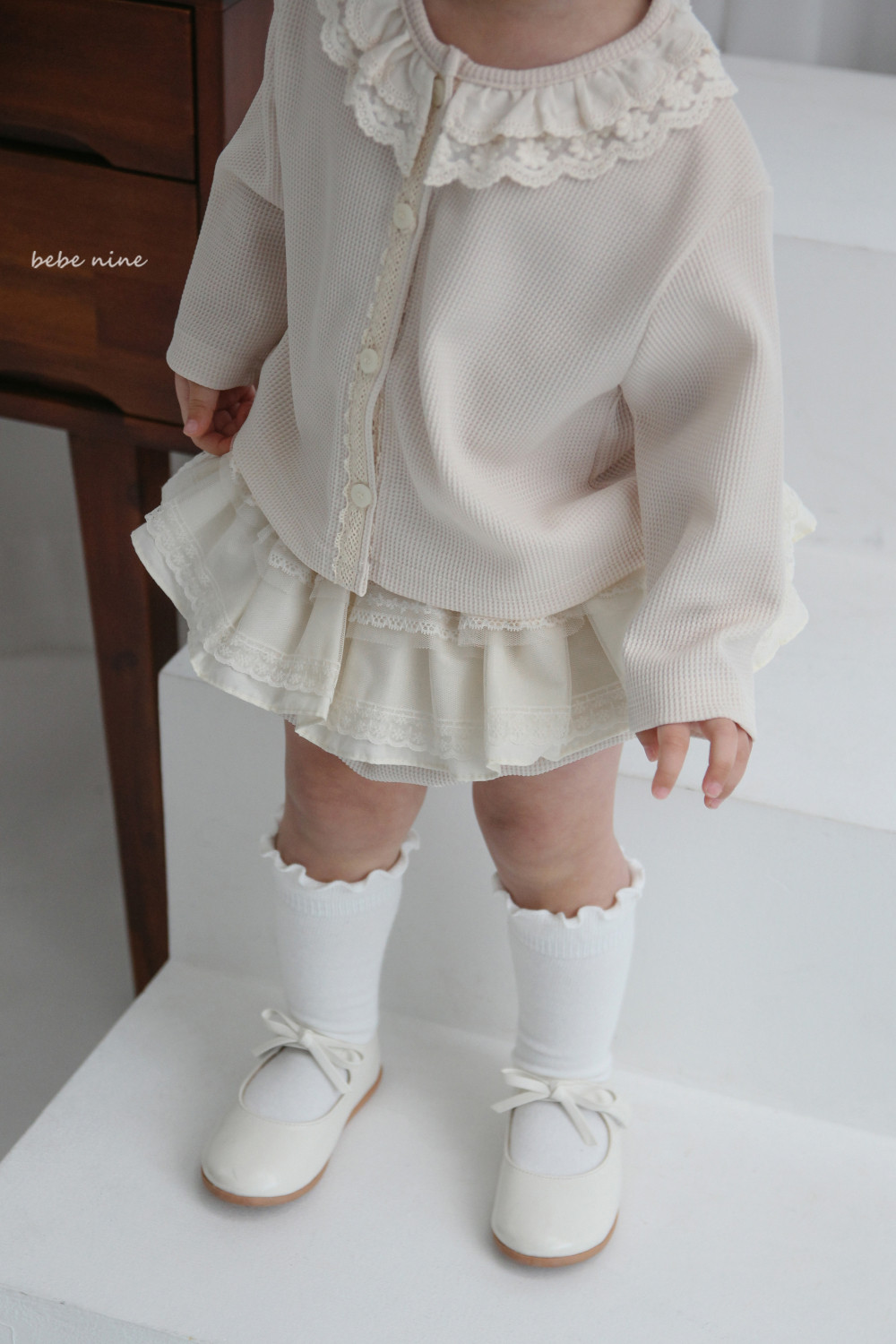 bebe nine16 (65-90) 2色層次荷葉蕾絲包屁裙