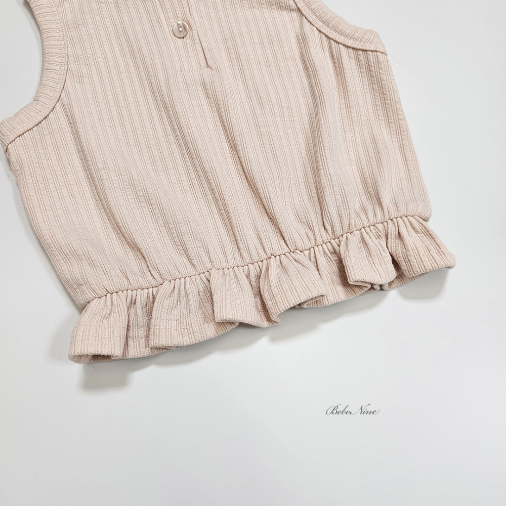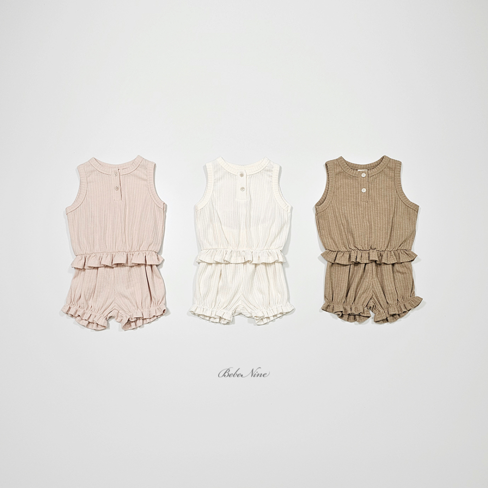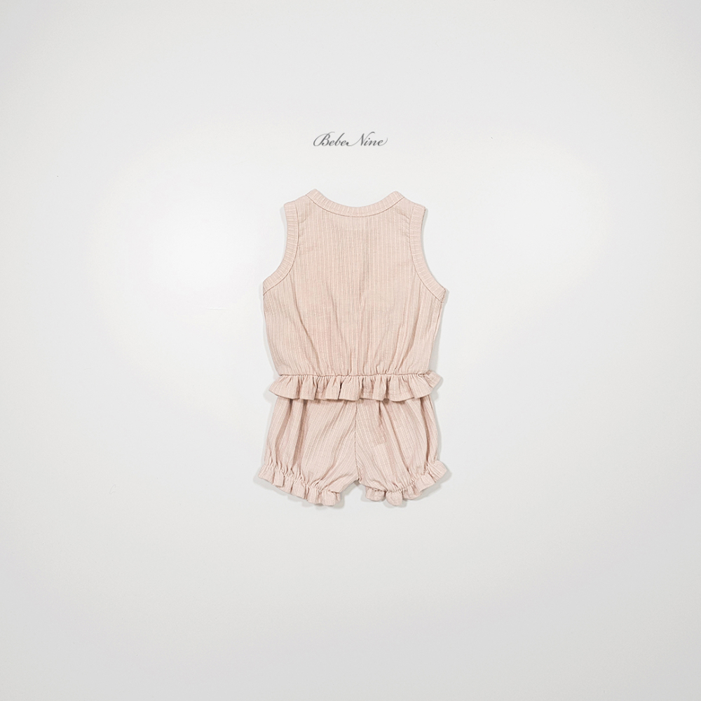 bebe nine01 (6m-24m) 3色棉麻荷葉吊帶包屁裙