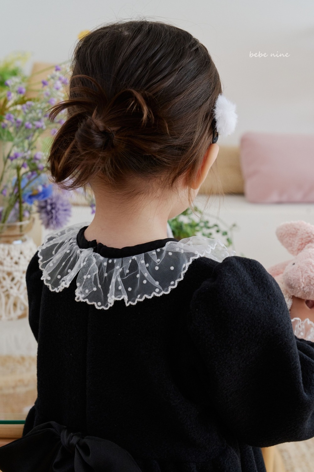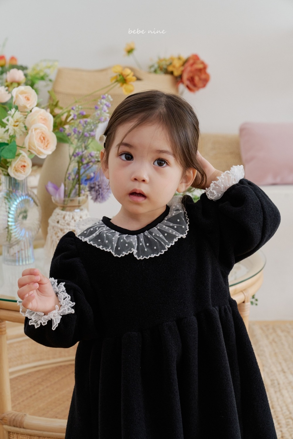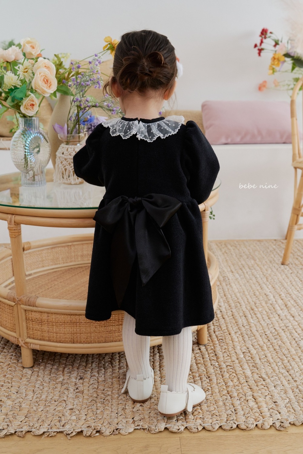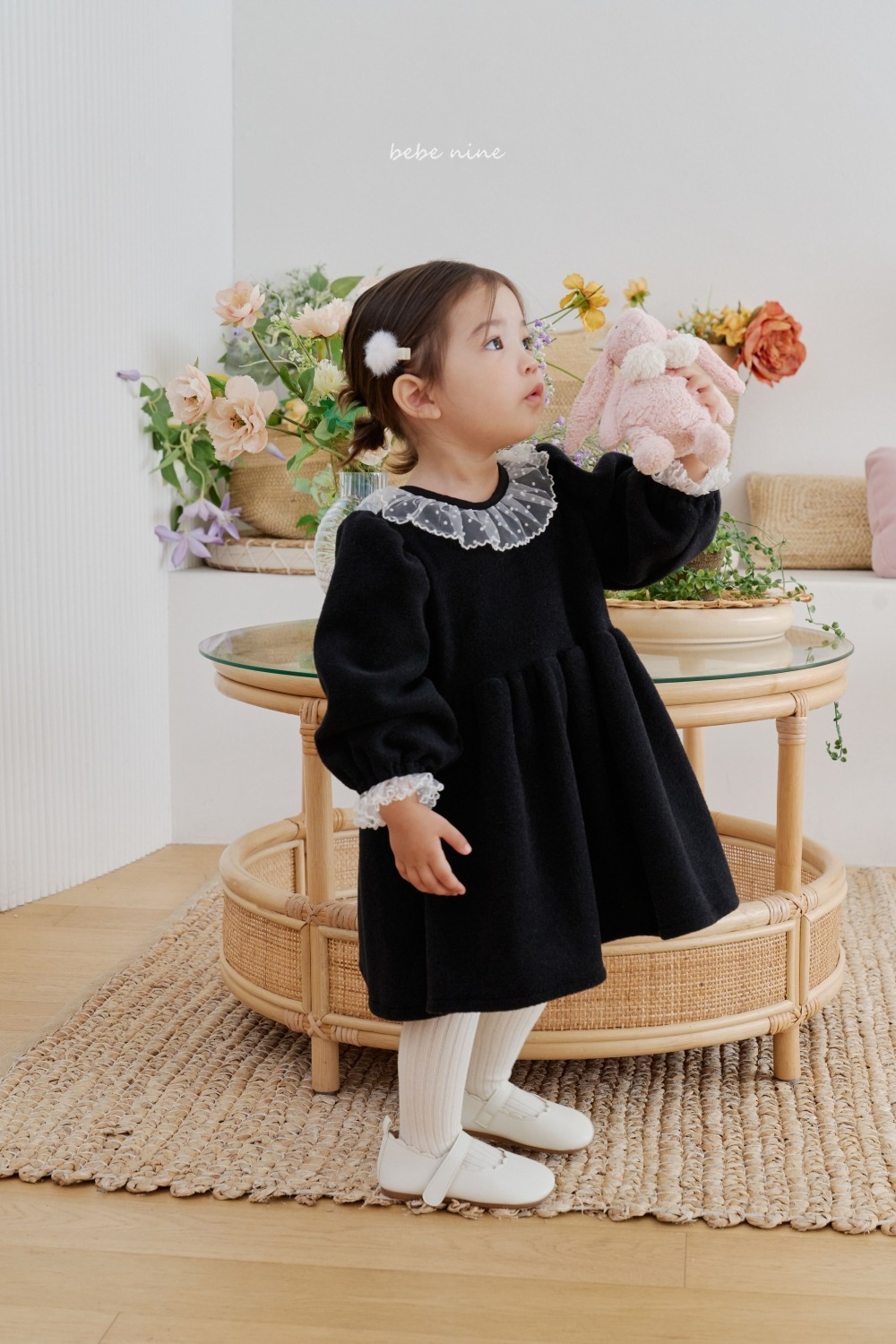 bebe nine28 (65cm-115cm) 2色連毛荷葉邊洋裝
