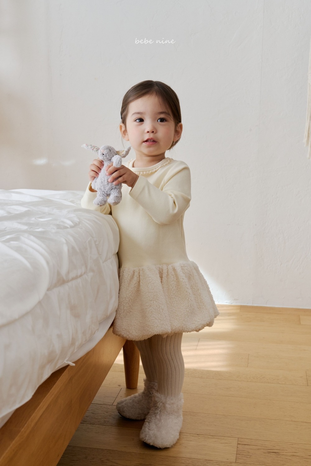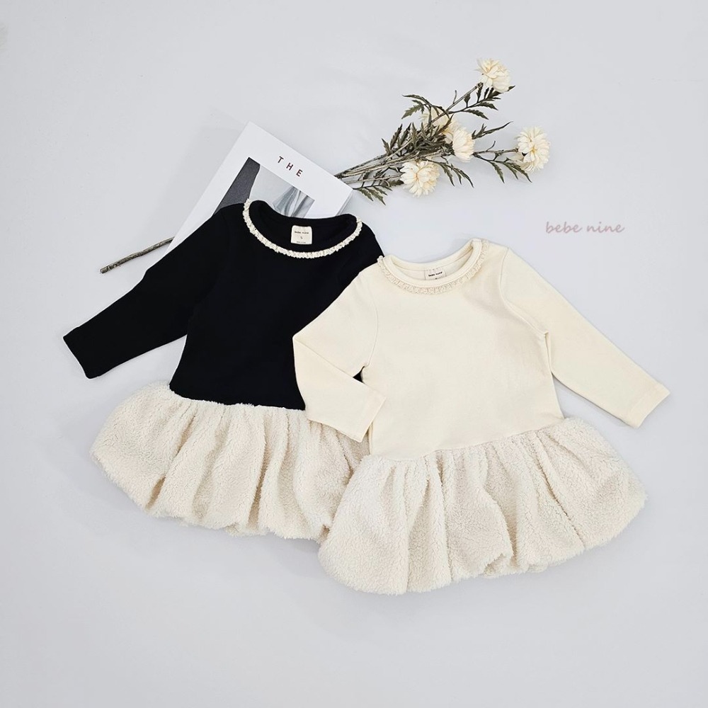 bebe nine28 (65cm-115cm) 2色連毛荷葉邊洋裝