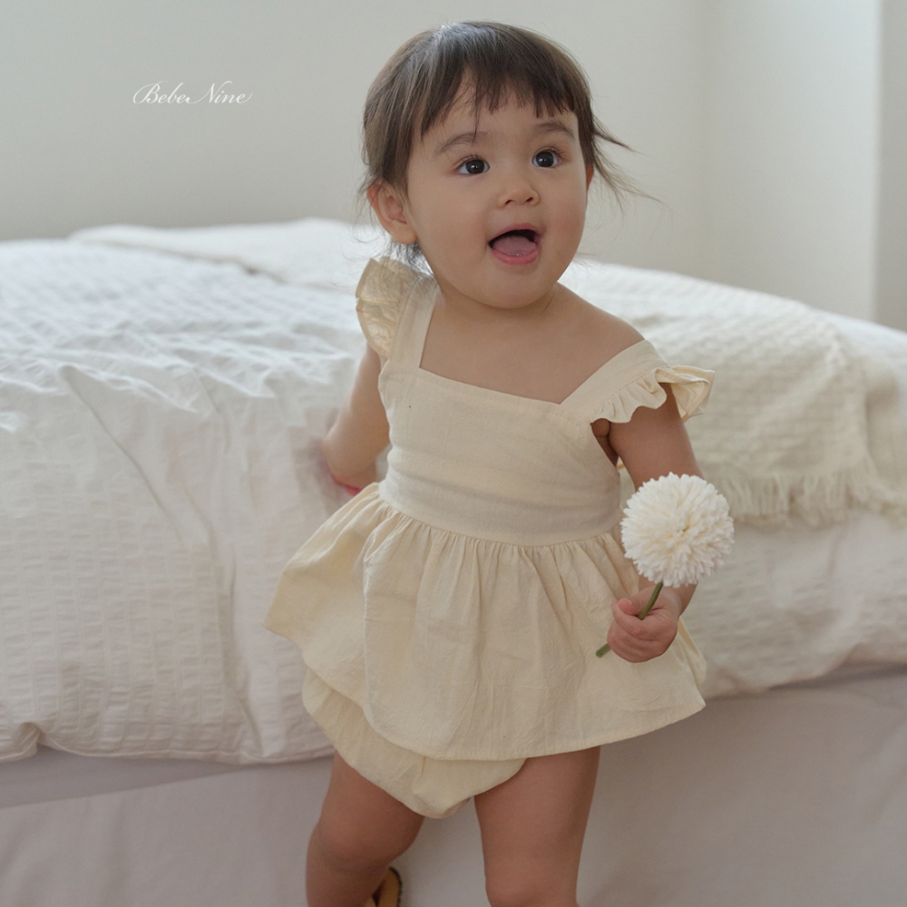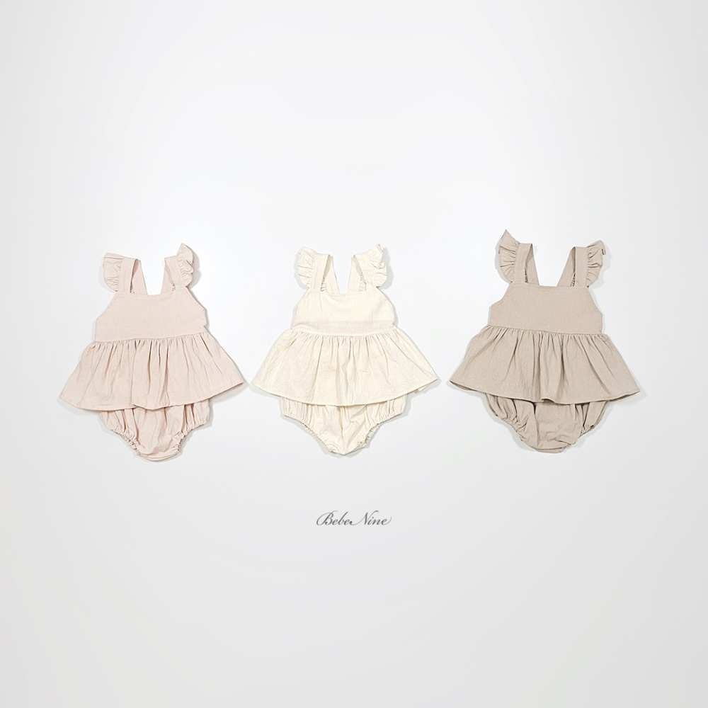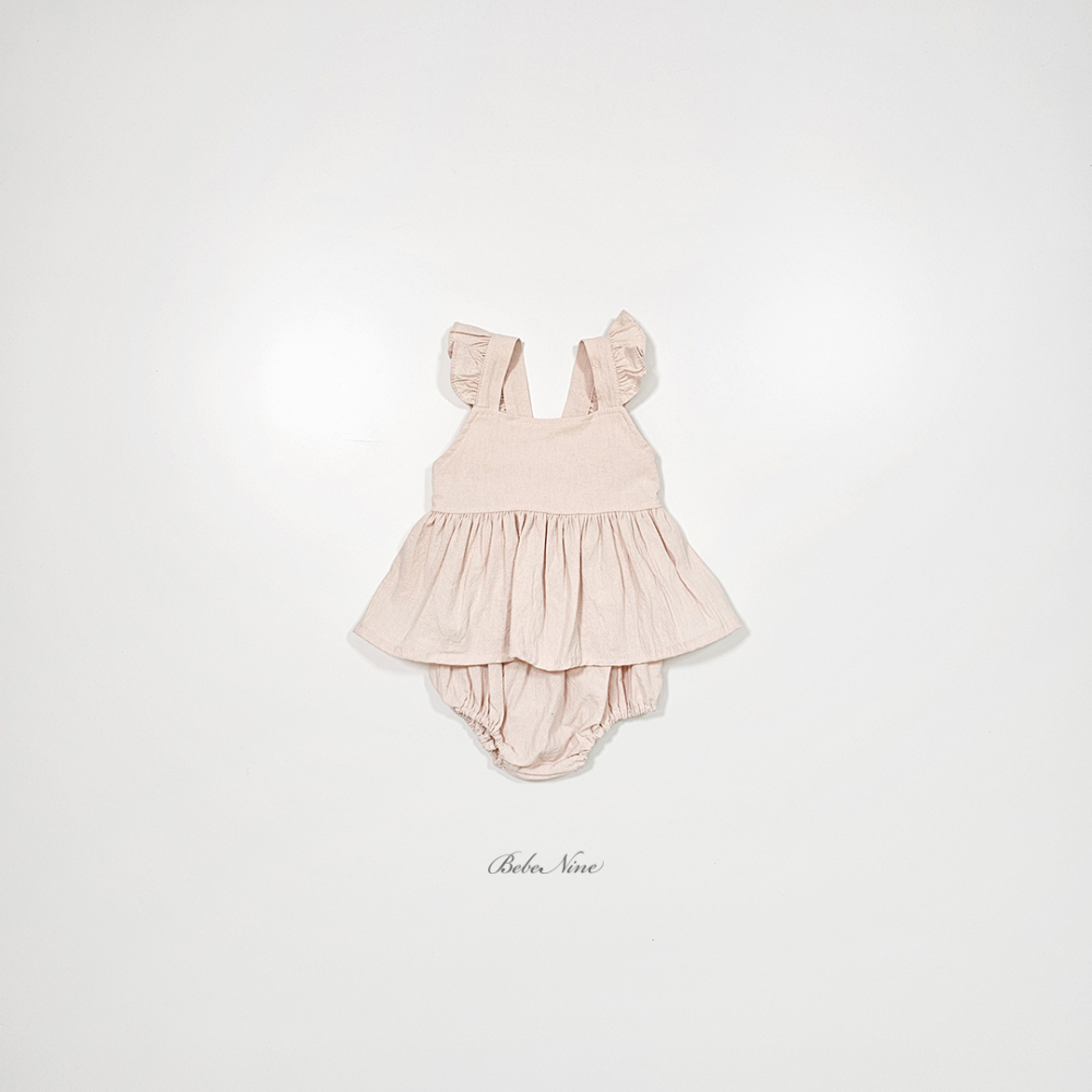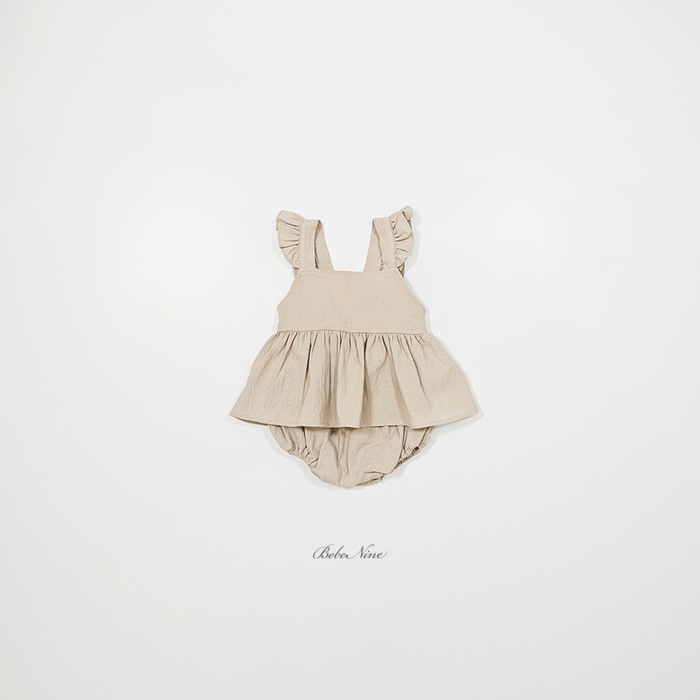 bebe nine01 (6m-24m) 3色棉麻荷葉吊帶包屁裙