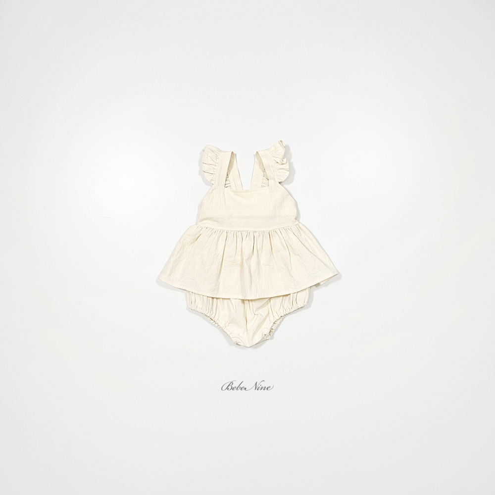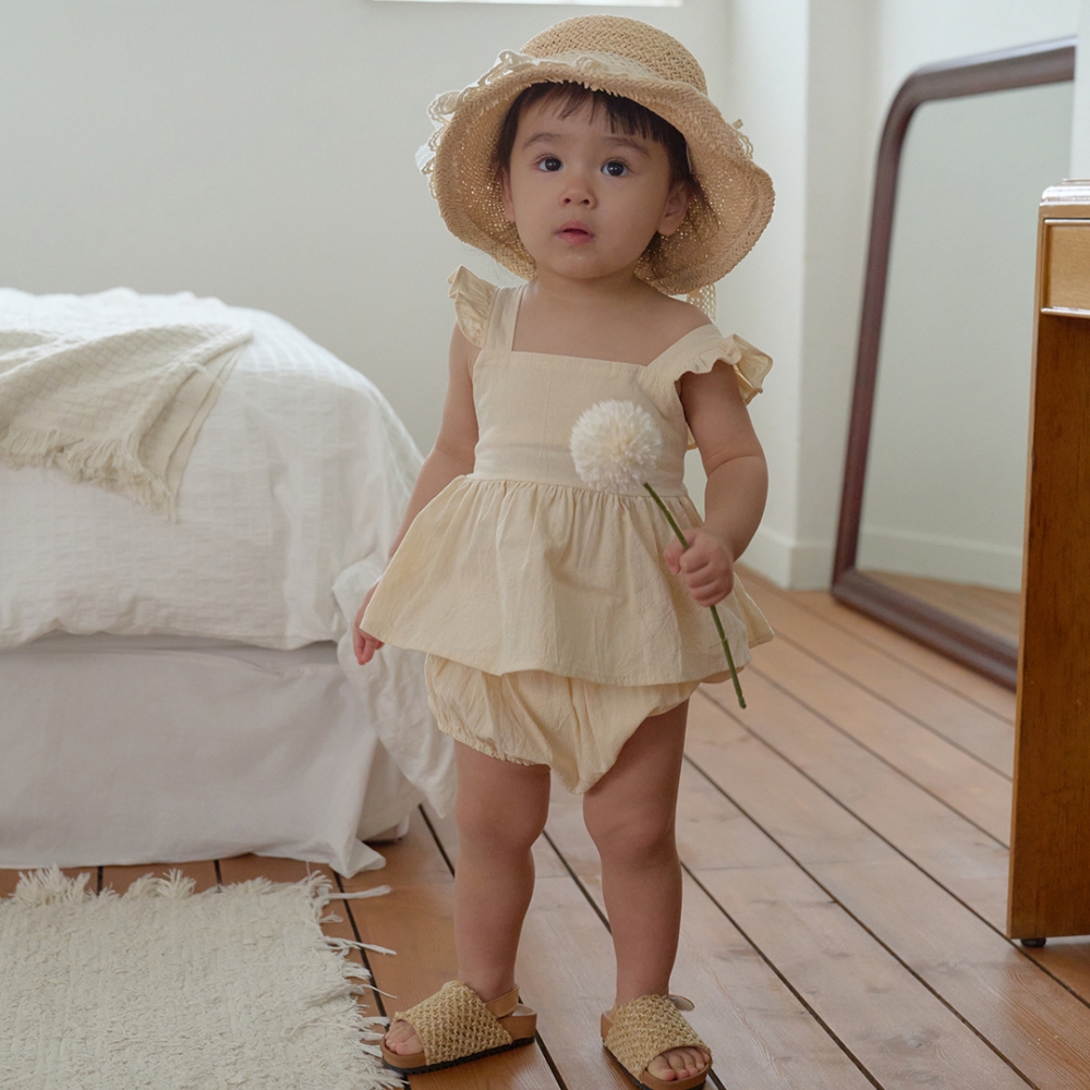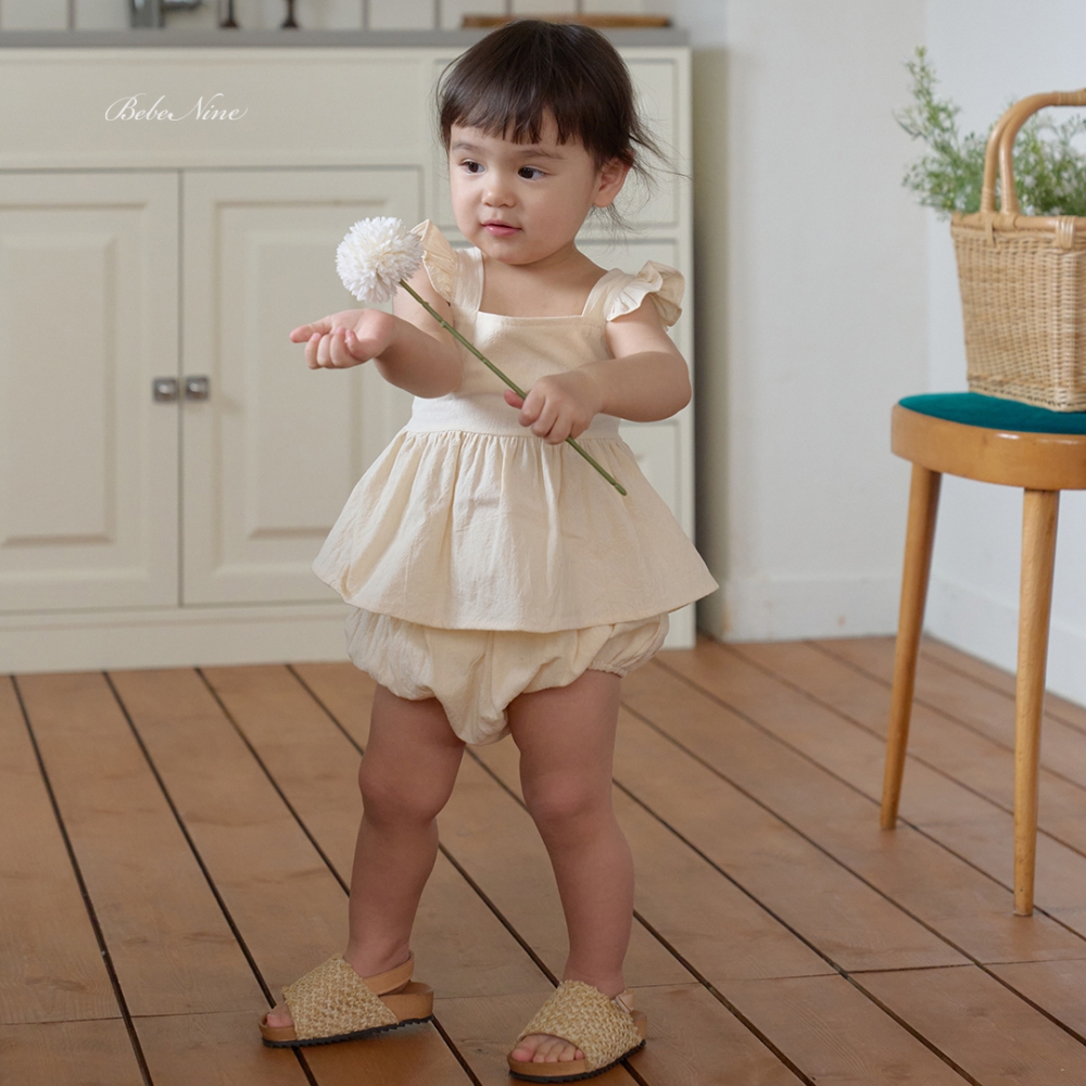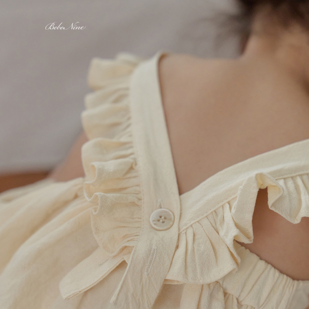 bebe nine01 (6m-24m) 3色棉麻荷葉吊帶包屁裙