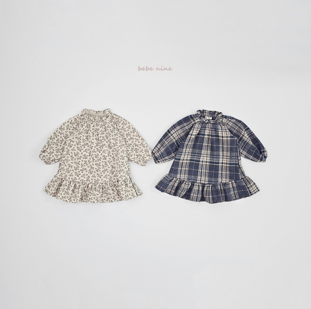 bebe nine12 (55cm-75cm) 2色荷葉立領格紋包屁衣