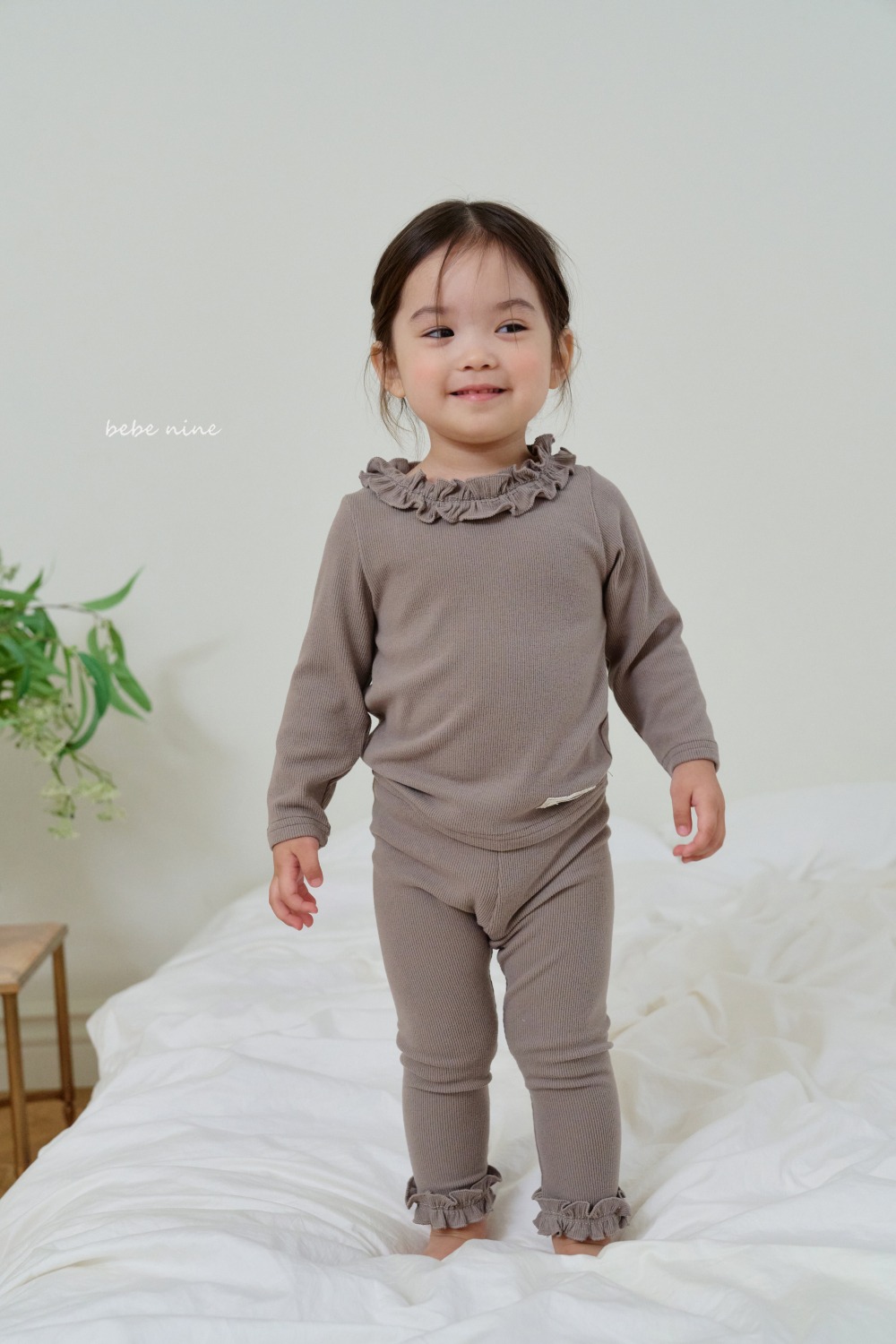 bebe nine41 (65cm-115cm) 2色抓絨荷葉領套裝
