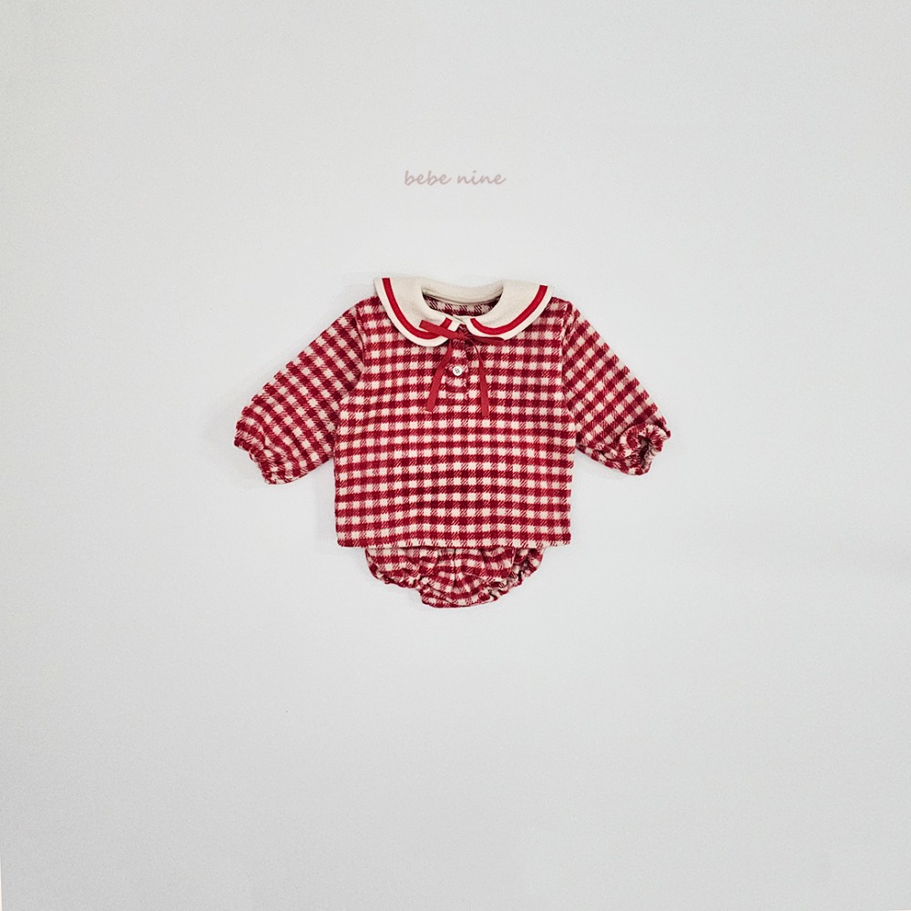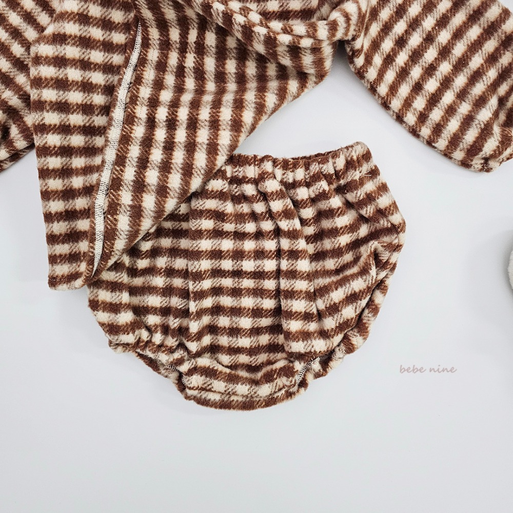 bebe nine59 (65cm-85cm) 3色格紋圓領段帶包屁套裝