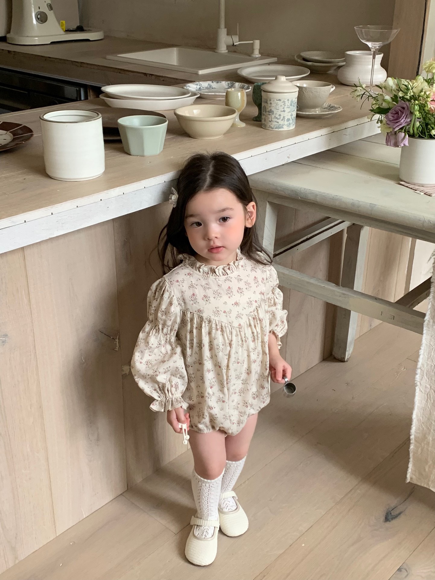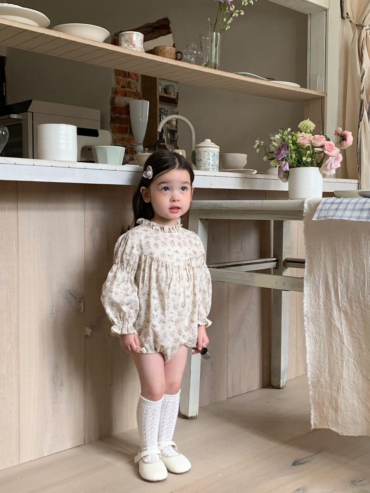 jenny bébé|(66-90cm) 碎花褶皺立領包屁衣