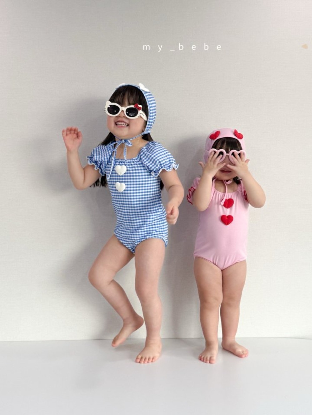 my_bebe03|(75-105cm) 荷葉抓皺愛心泳衣含泳帽