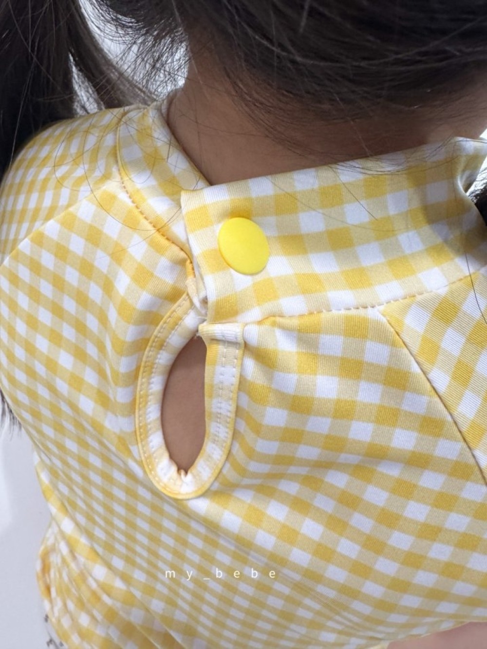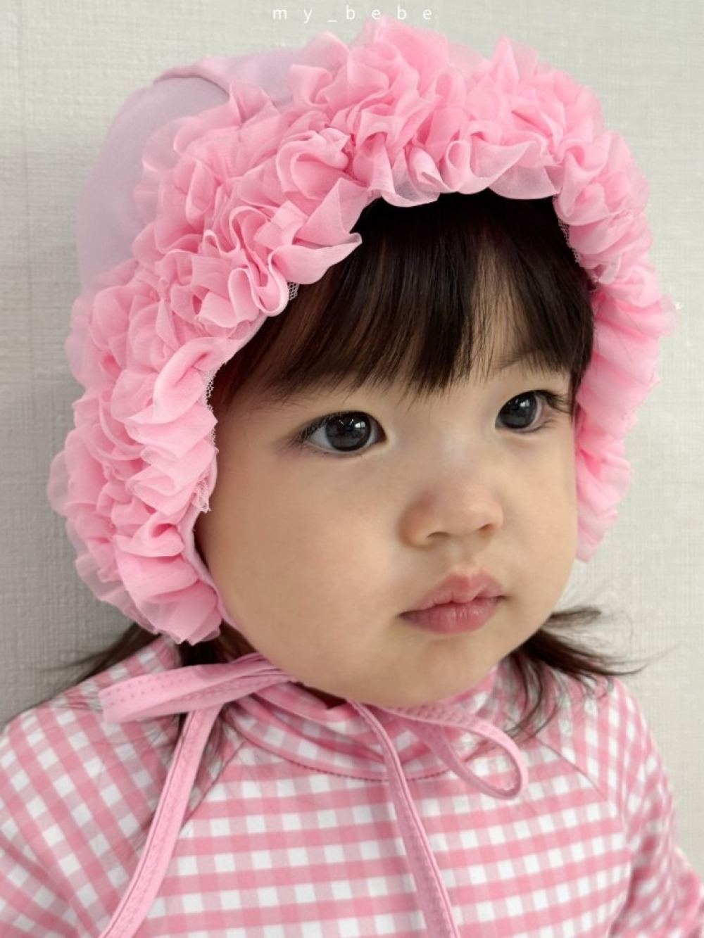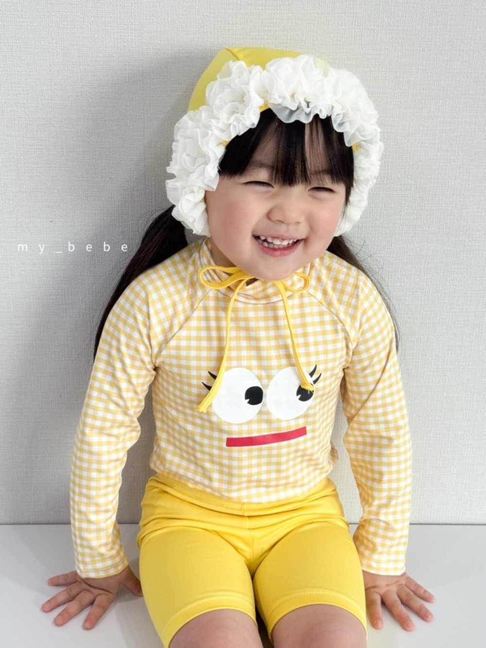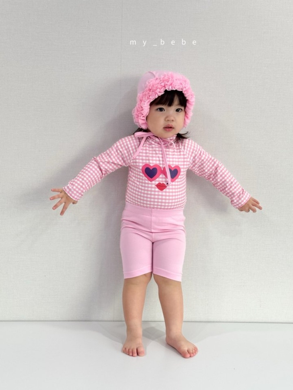 my_bebe05|(75-105cm) 格紋長袖泳衣/花邊泳帽