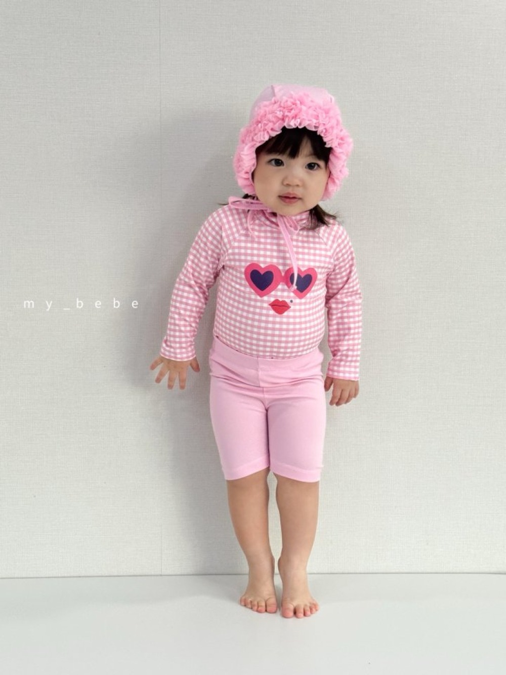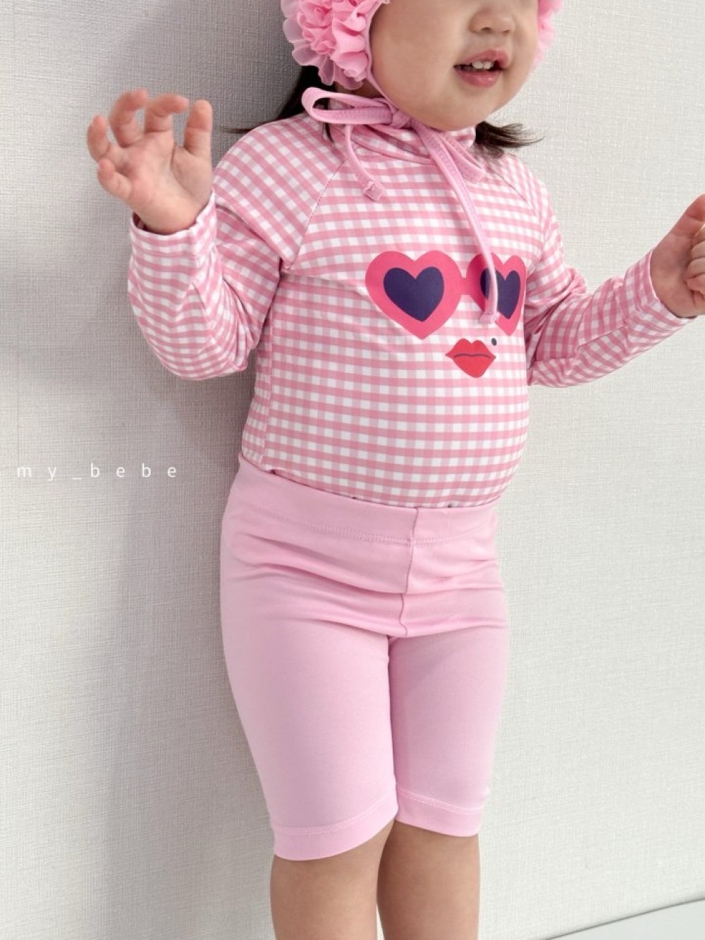 my_bebe03|(75-105cm) 荷葉抓皺愛心泳衣含泳帽