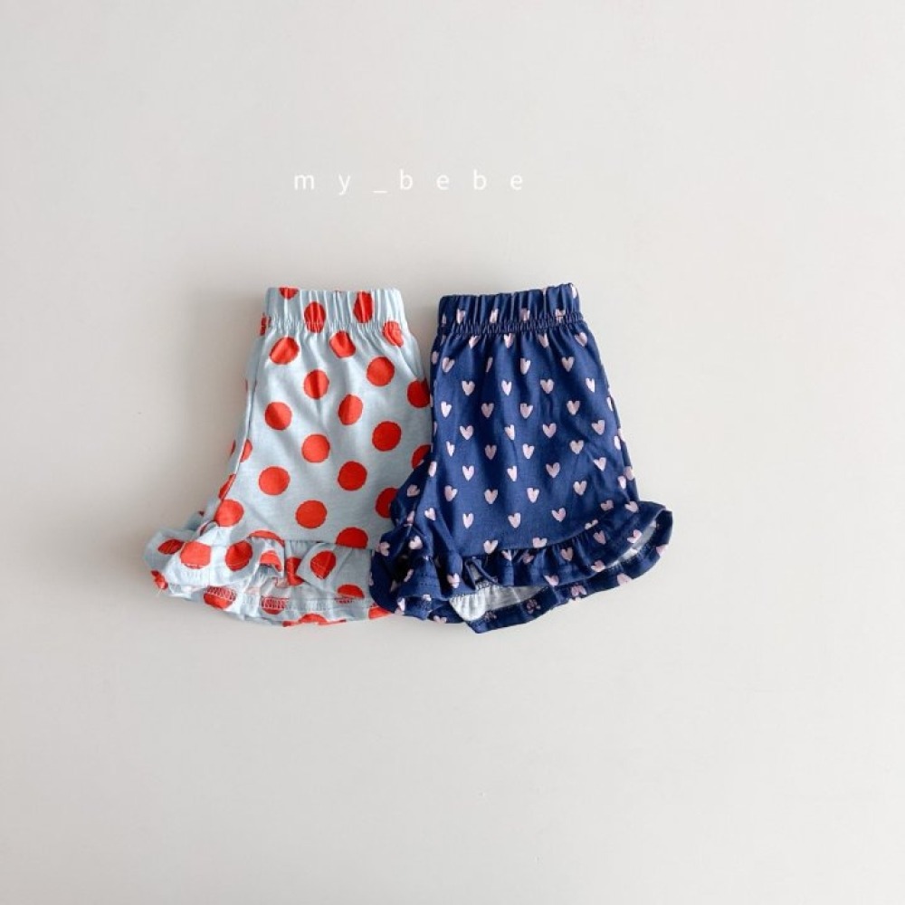 my_bebe28|(80-120cm) 印花荷葉邊短褲