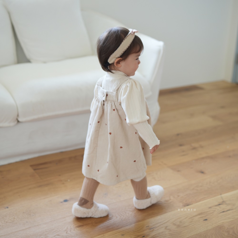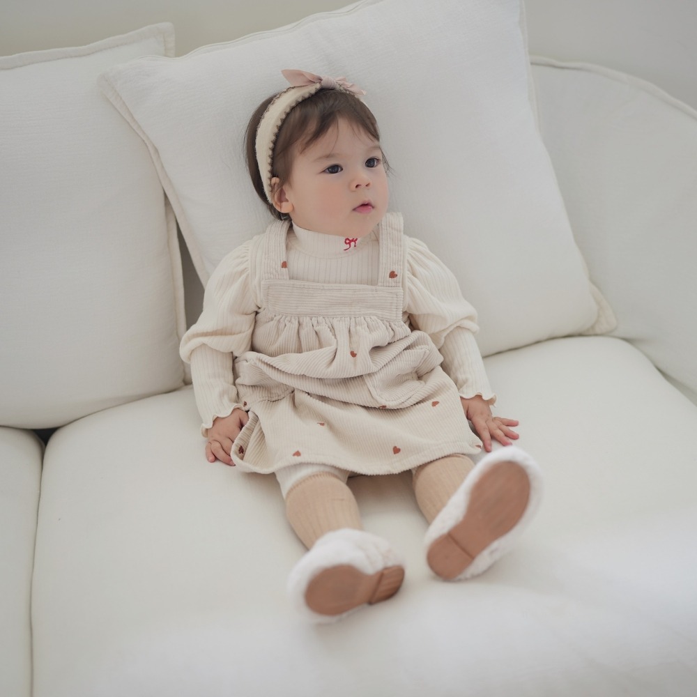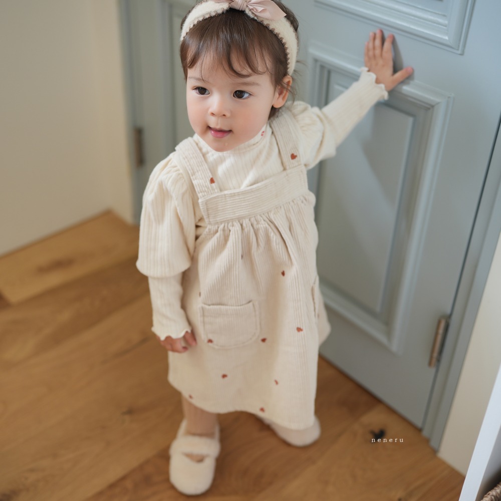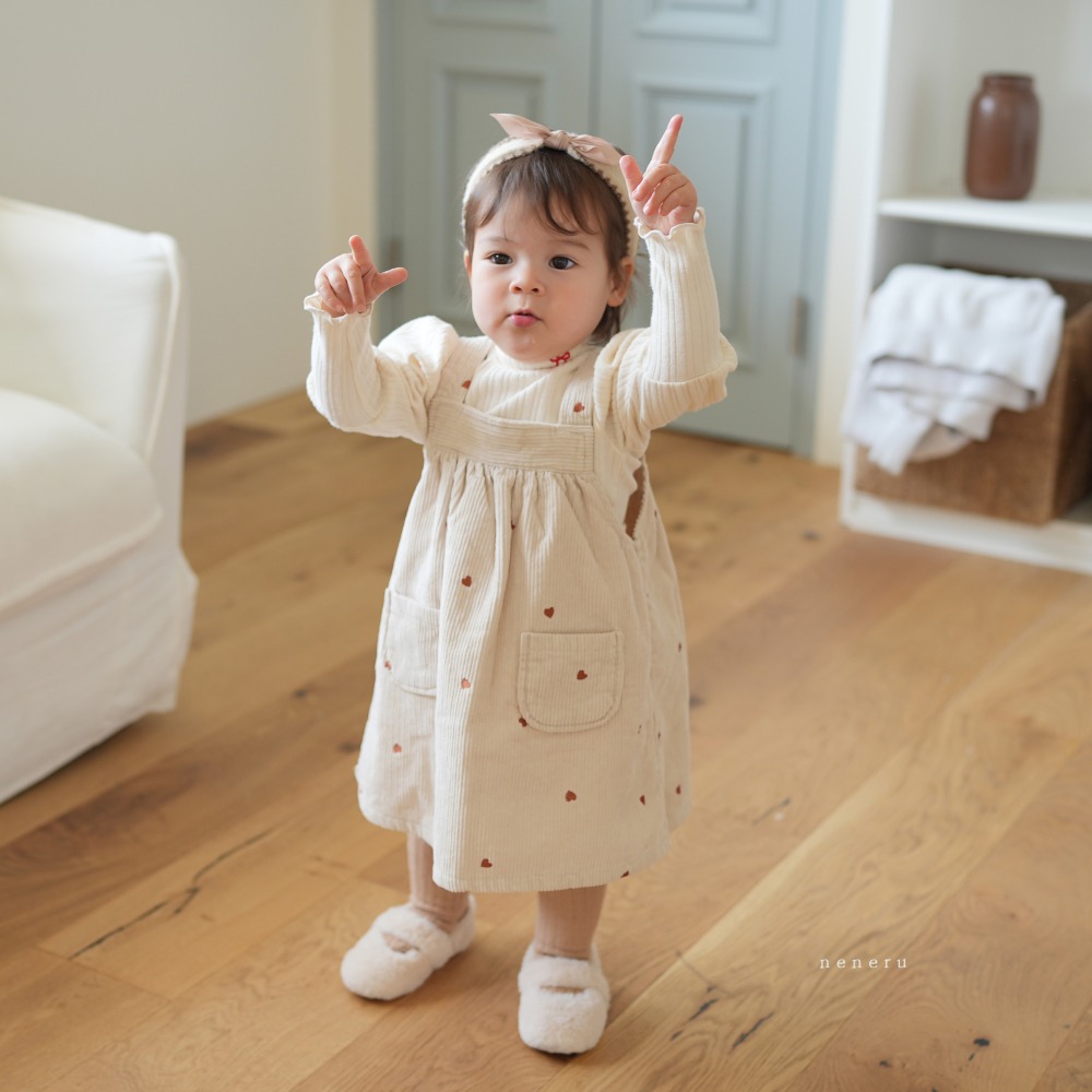neneru10|(60cm-85cm) 1色愛心印花燈芯絨吊帶裙
