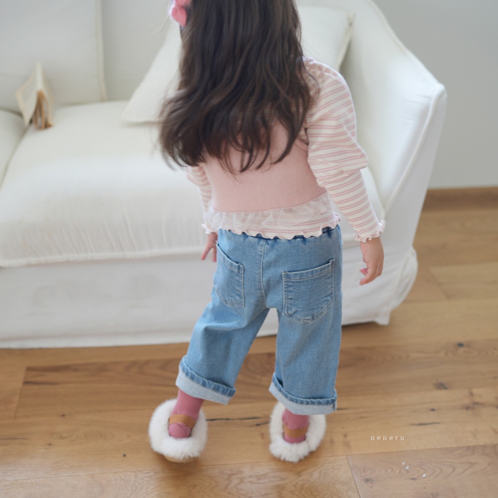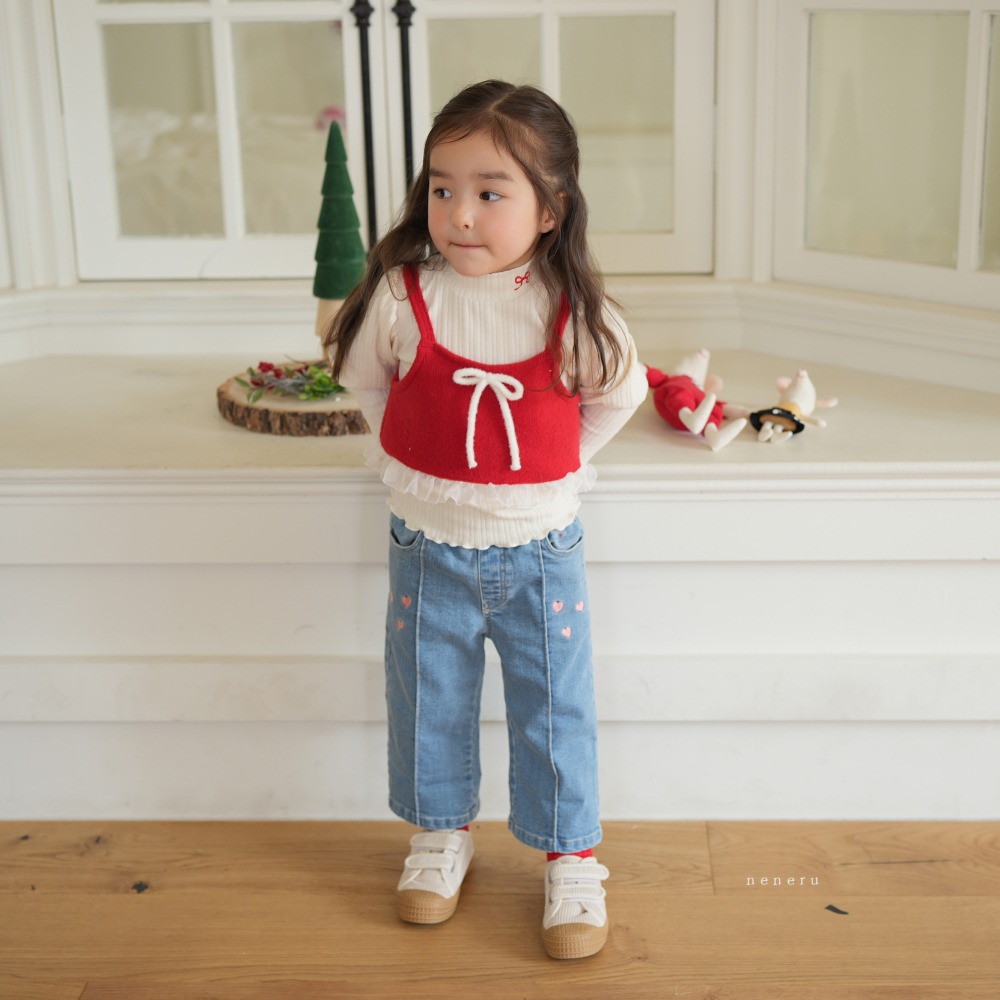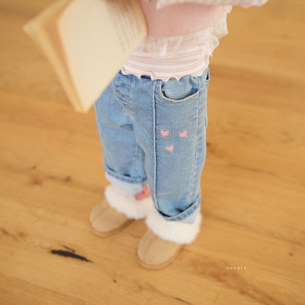 neneru28|(70cm-125cm) 1色愛心刺繡直筒牛仔褲