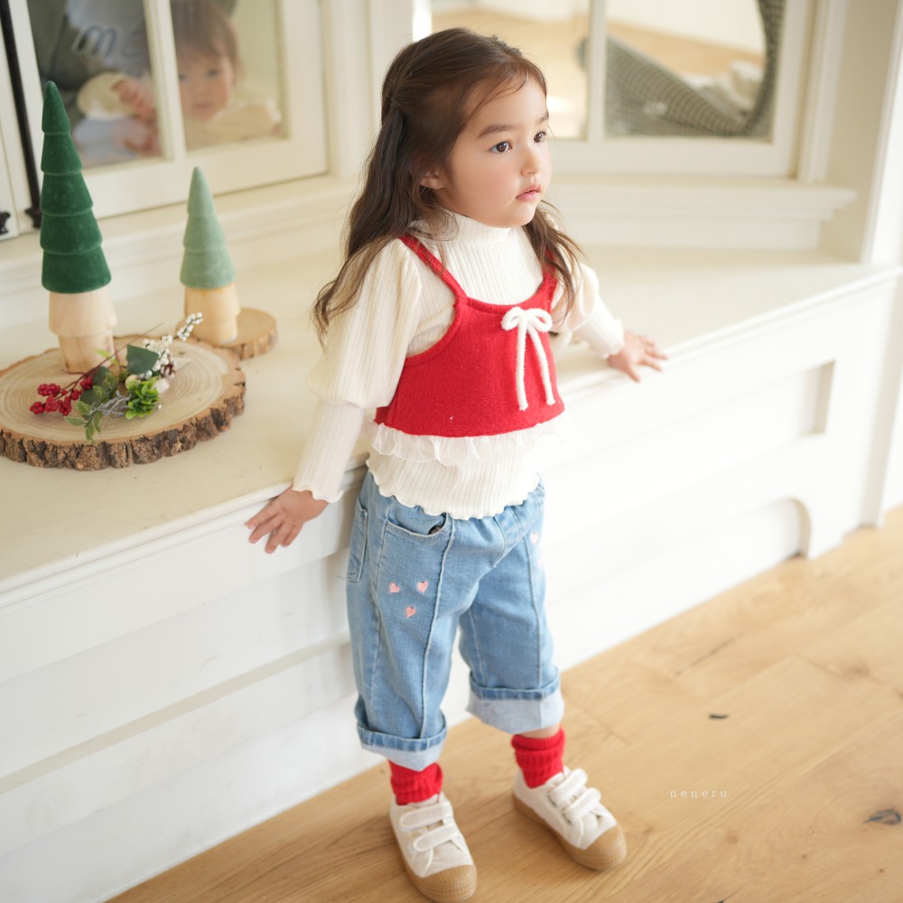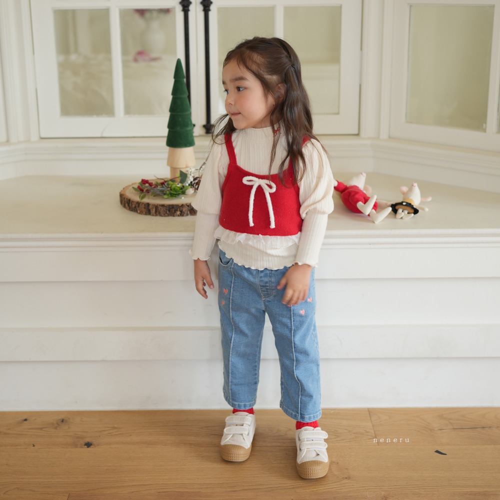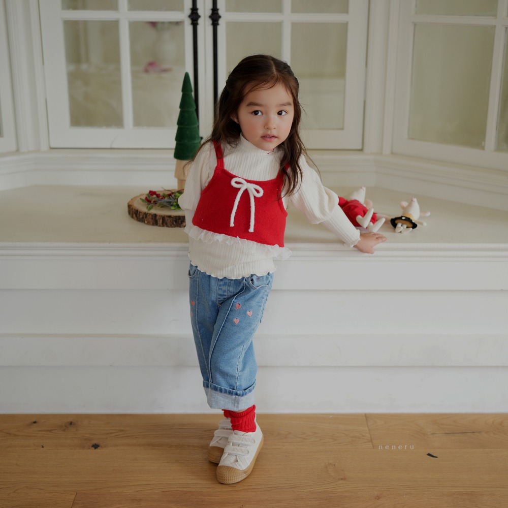 neneru28|(70cm-125cm) 1色愛心刺繡直筒牛仔褲