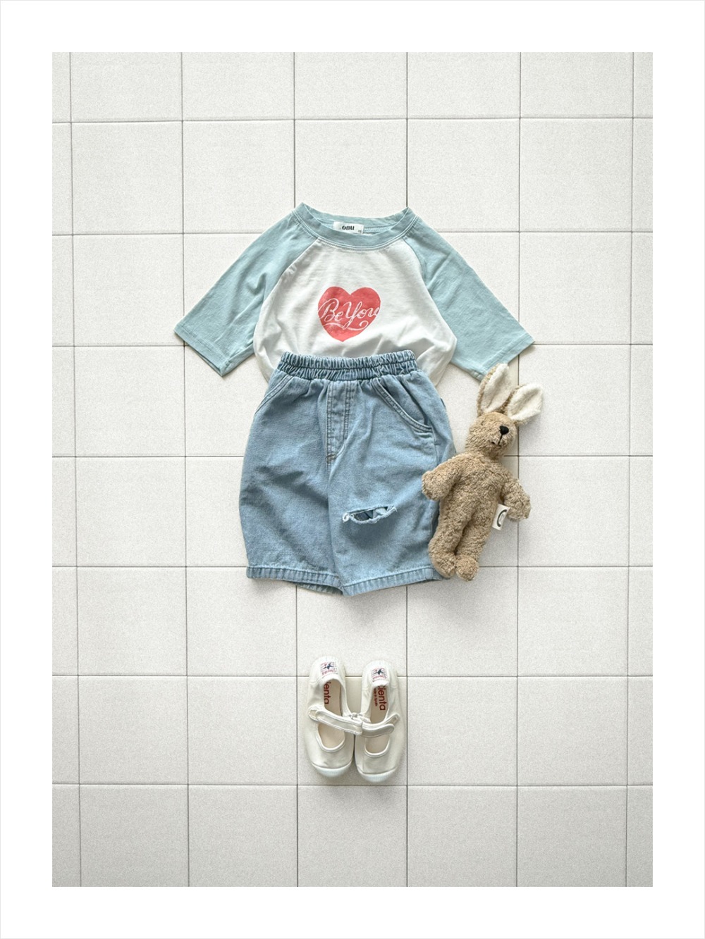onu06|(70cm-115cm) 愛心印花7分袖上衣