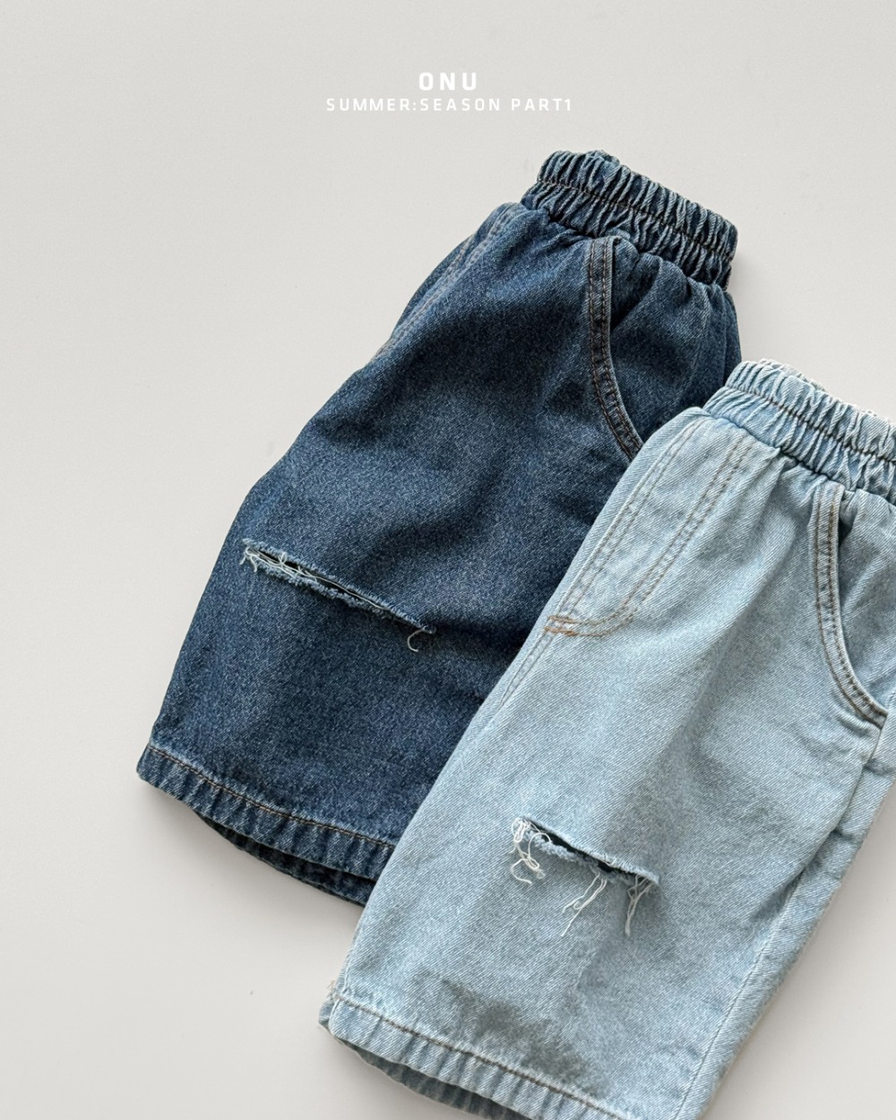 onu39|(70cm-115cm) 刷破七分牛仔褲