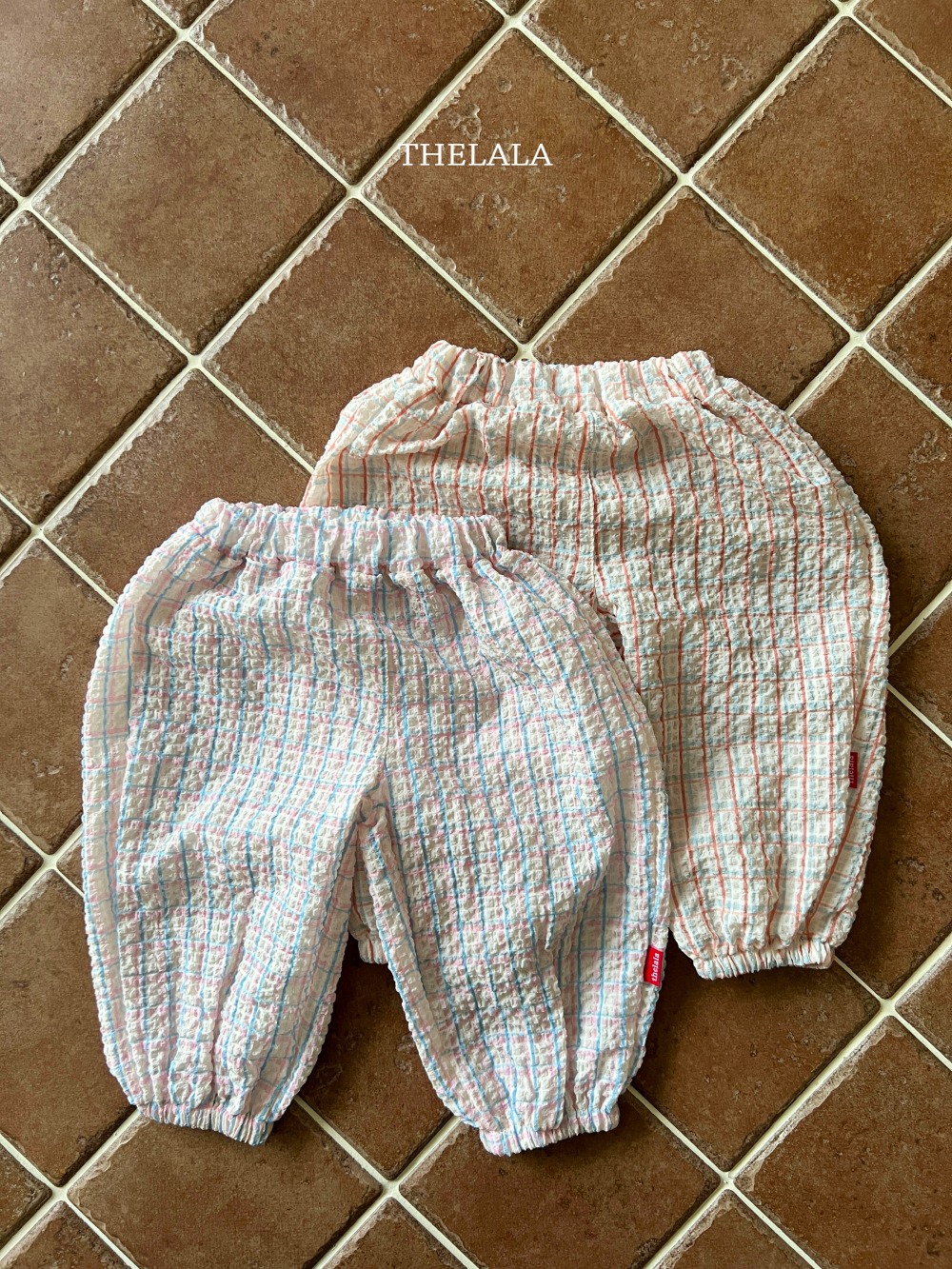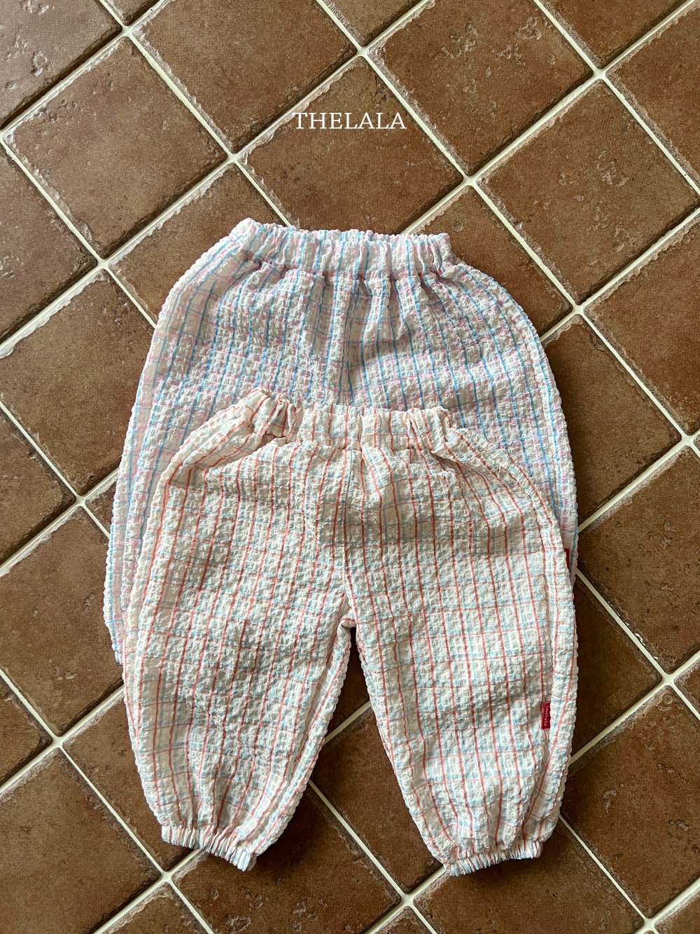 thelala13| (70-115) 棉麻抓皺格紋縮口褲