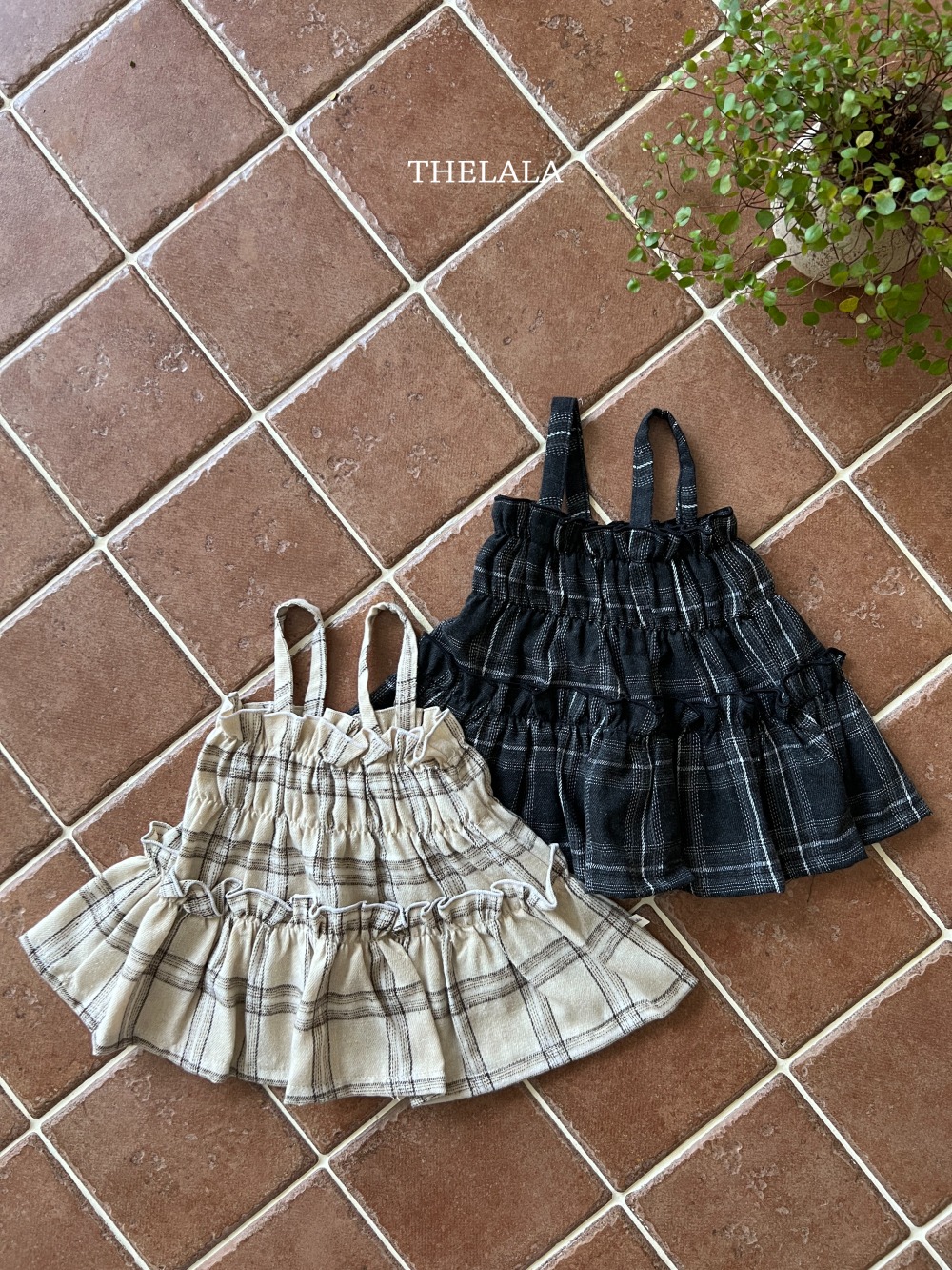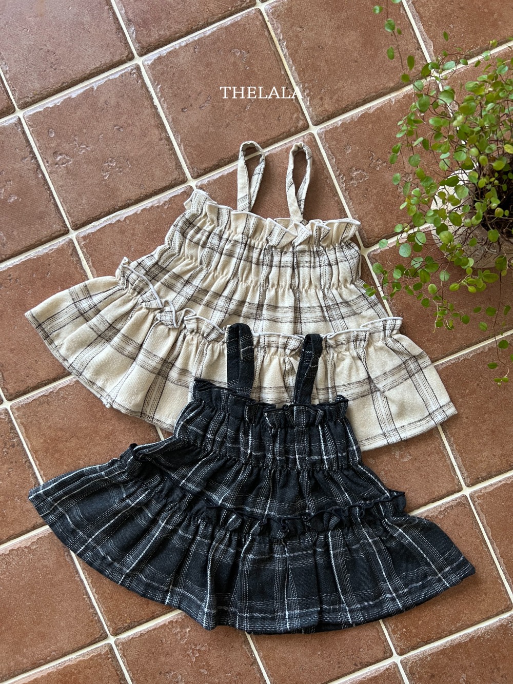 thelala32| (1y-6y) 格紋肩帶鬆緊背心