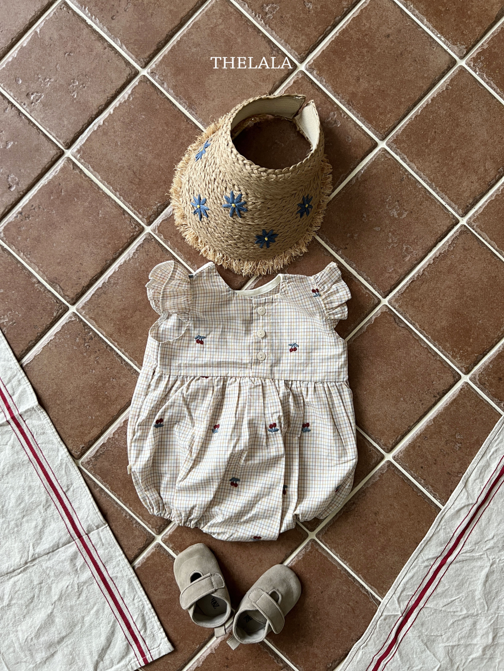 thelala52| (0m-18m) 壓花櫻桃格紋無袖包屁衣