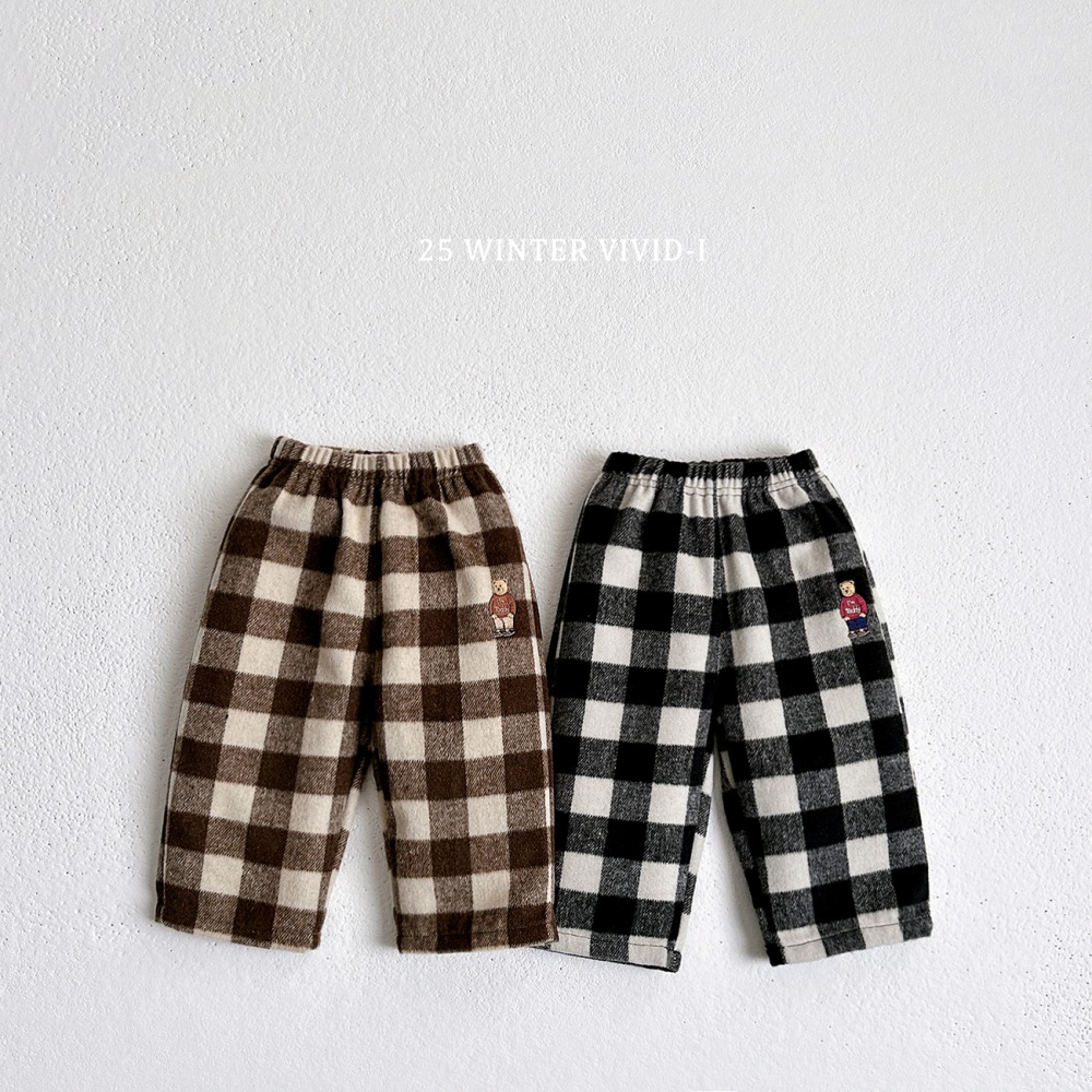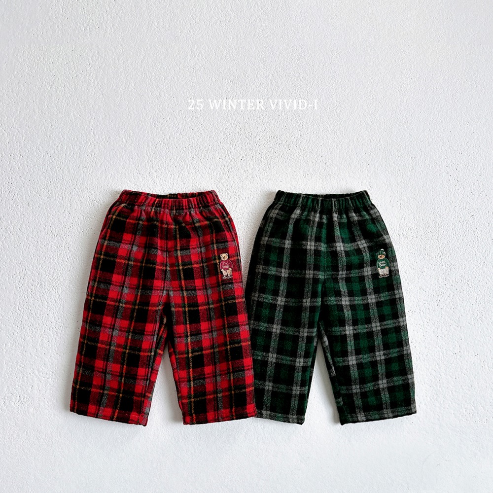 vivid16|(78cm-125cm) 格紋小熊長褲